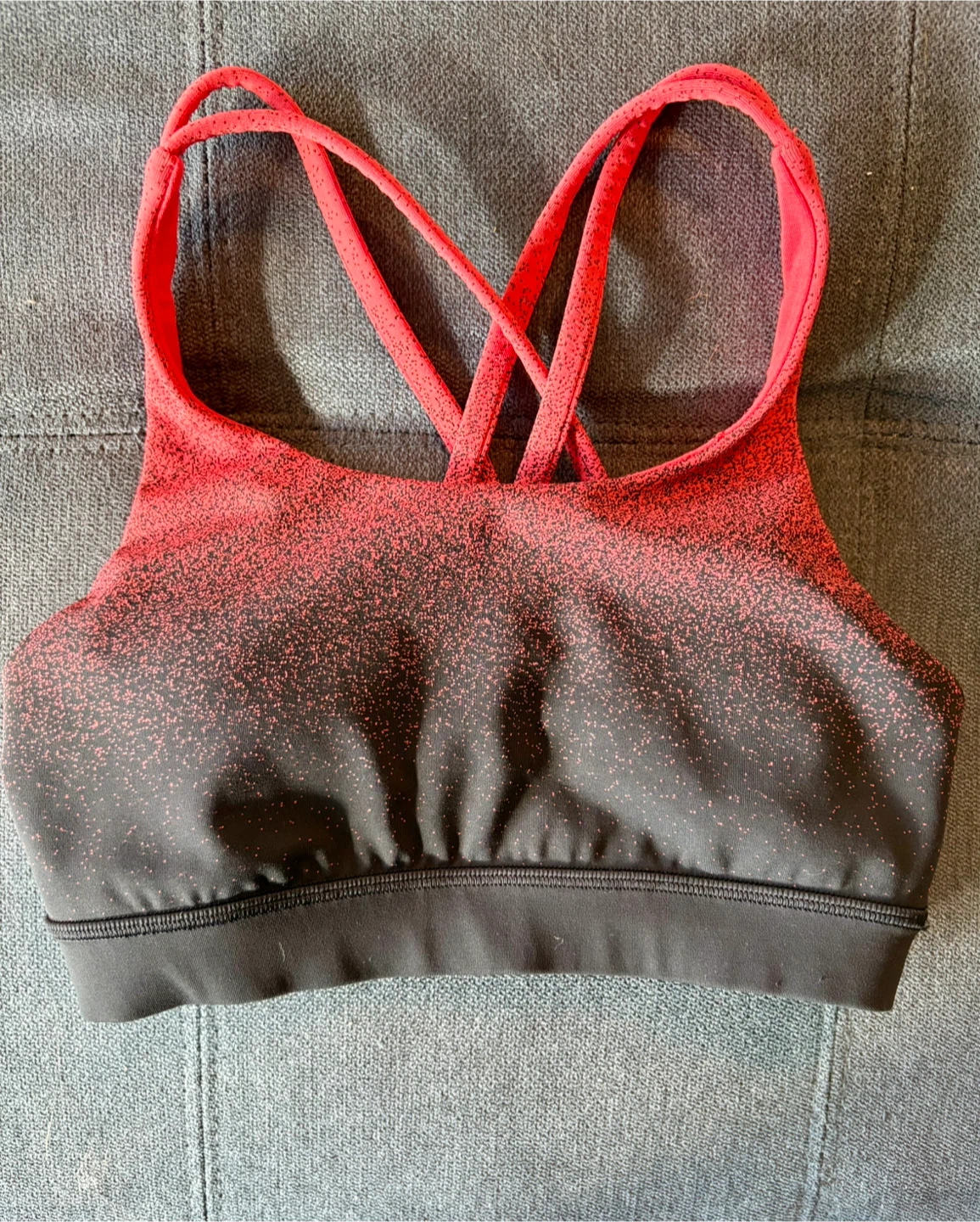 Like new women’s Lululemon sports bra in size small. Black with red at the top and inside. Has padding inside. Pick up new sherboune and Adelaide st east or sometimes at some TTC stations.