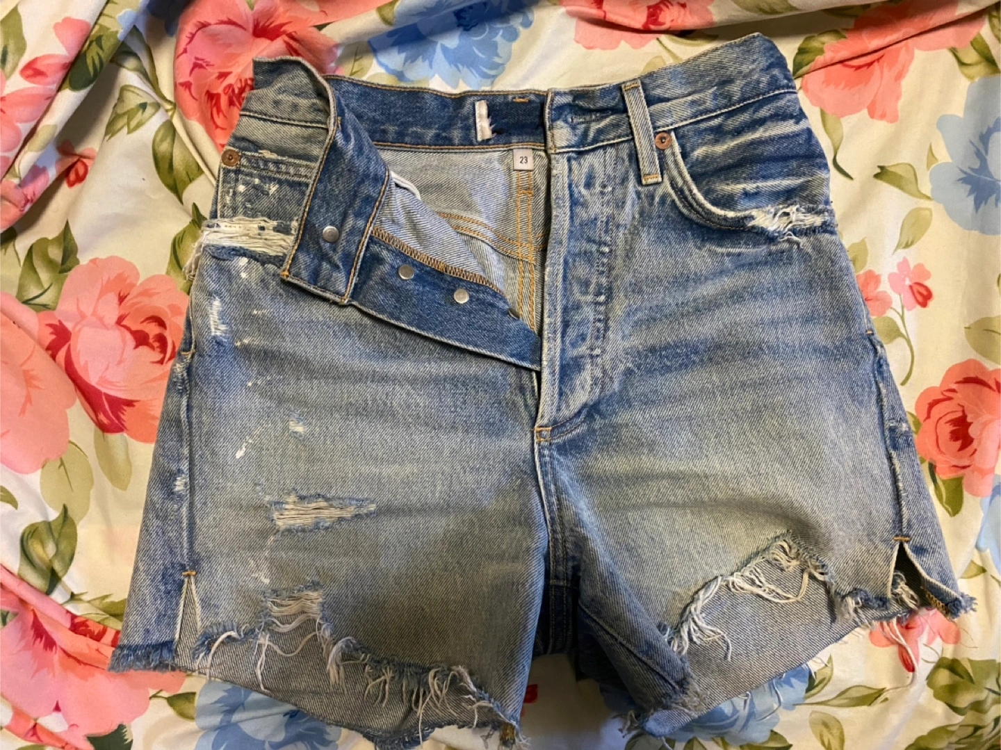 140size Fits like an xxs US 23 light blue jean shorts. main tag has been cut off unfortunately but there is another on the inside. Have been worn (maybe 5 times) but are great condition. for $15.