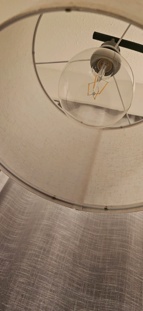 Here's a stylish black arc floor lamp in perfect condition. It stands 63 inches tall, with a lampshade that's 9 inches high and 12 inches wide. The base has a diameter of 9.8 inches. It's a great addition to any living room or bedroom.