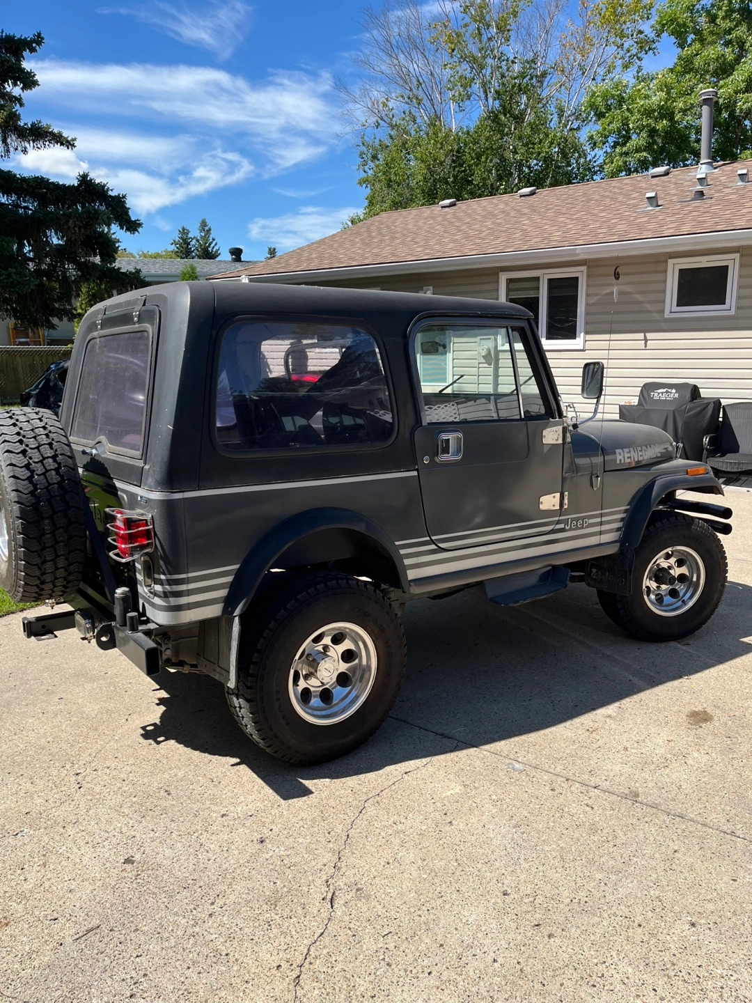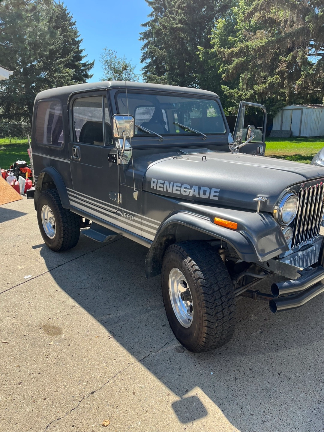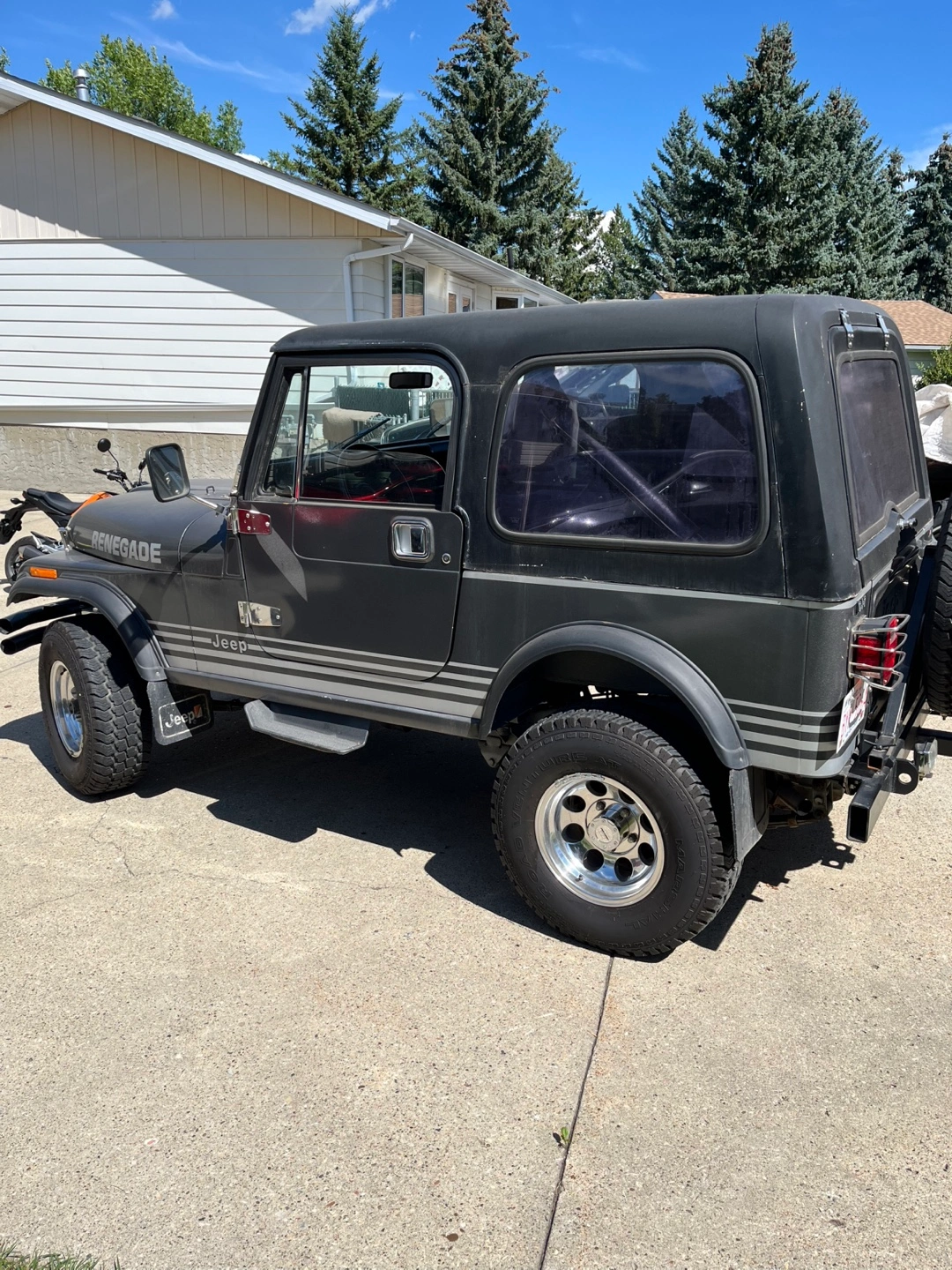 Selling a Jeep Renegade. It is in good condition and ready for a new owner! 1985 Jeep CJ7, excellent condition. Was totally rebuilt from the ground up about 10 years ago. 4.2 L, Inline 6 cylinder, 5 speed. 5 New pro comp mags. $30000 obo. 182716 km showing on it