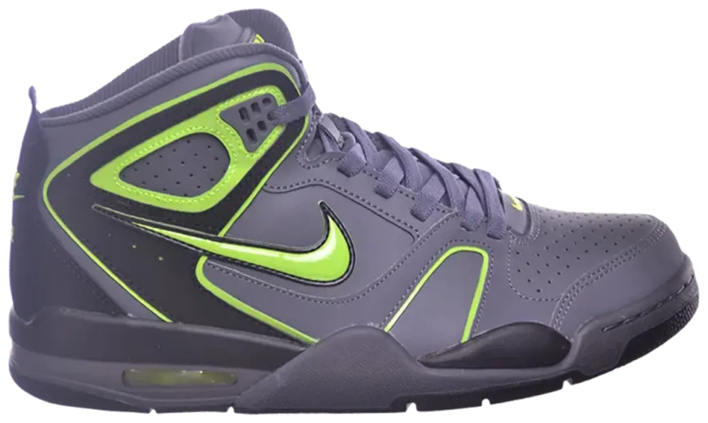 Brand new and never worn! These Nike Air Flight Falcon shoes feature a sleek dark grey & black design with bold Voltage (lime green) accents โ sporty, stylish, and comfortable.