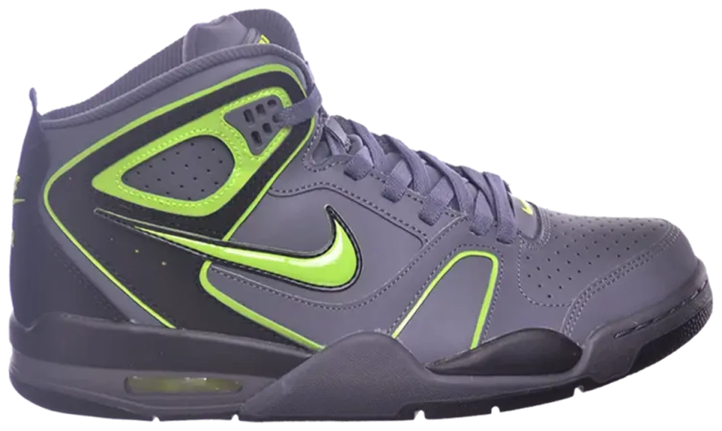 Brand new and never worn! These Nike Air Flight Falcon shoes feature a sleek dark grey & black design with bold Voltage (lime green) accents โ sporty, stylish, and comfortable.