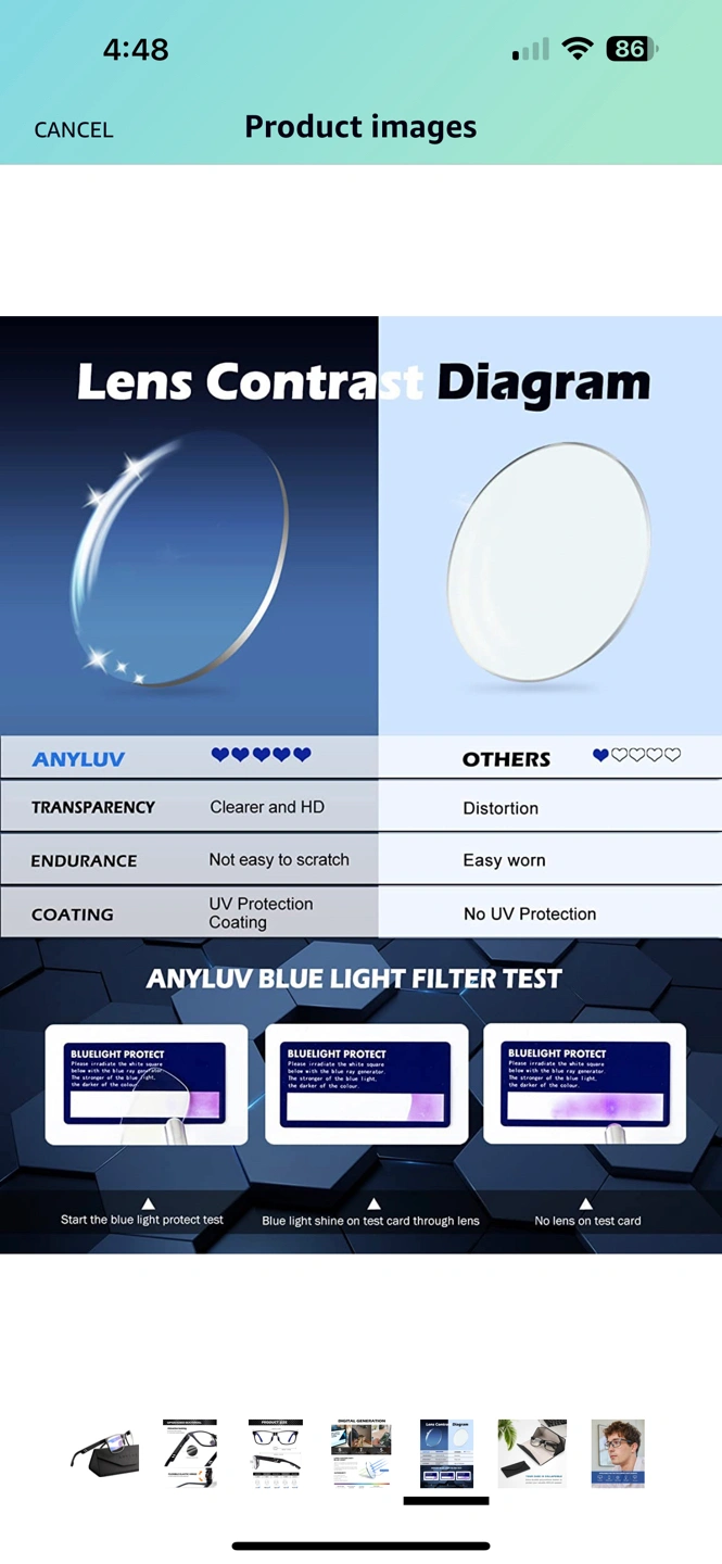 ☀ OVERAL BLUE BLOCK RATE: 45% - ANYLUV Blue Light Shield protects your eyes by filtering out 90% of the most harmful High Energy Blue Light rays while letting through the less harmful portion of the blue light spectrum. - FDA & CE APPROVED,Accord with ANSI Z80.3:2015,EN ISO 12312-1:2013(A1:2015) and AS/NZS 1067.1:2016 (Each pair of ANYLUV glasses has a paper Certification Report).