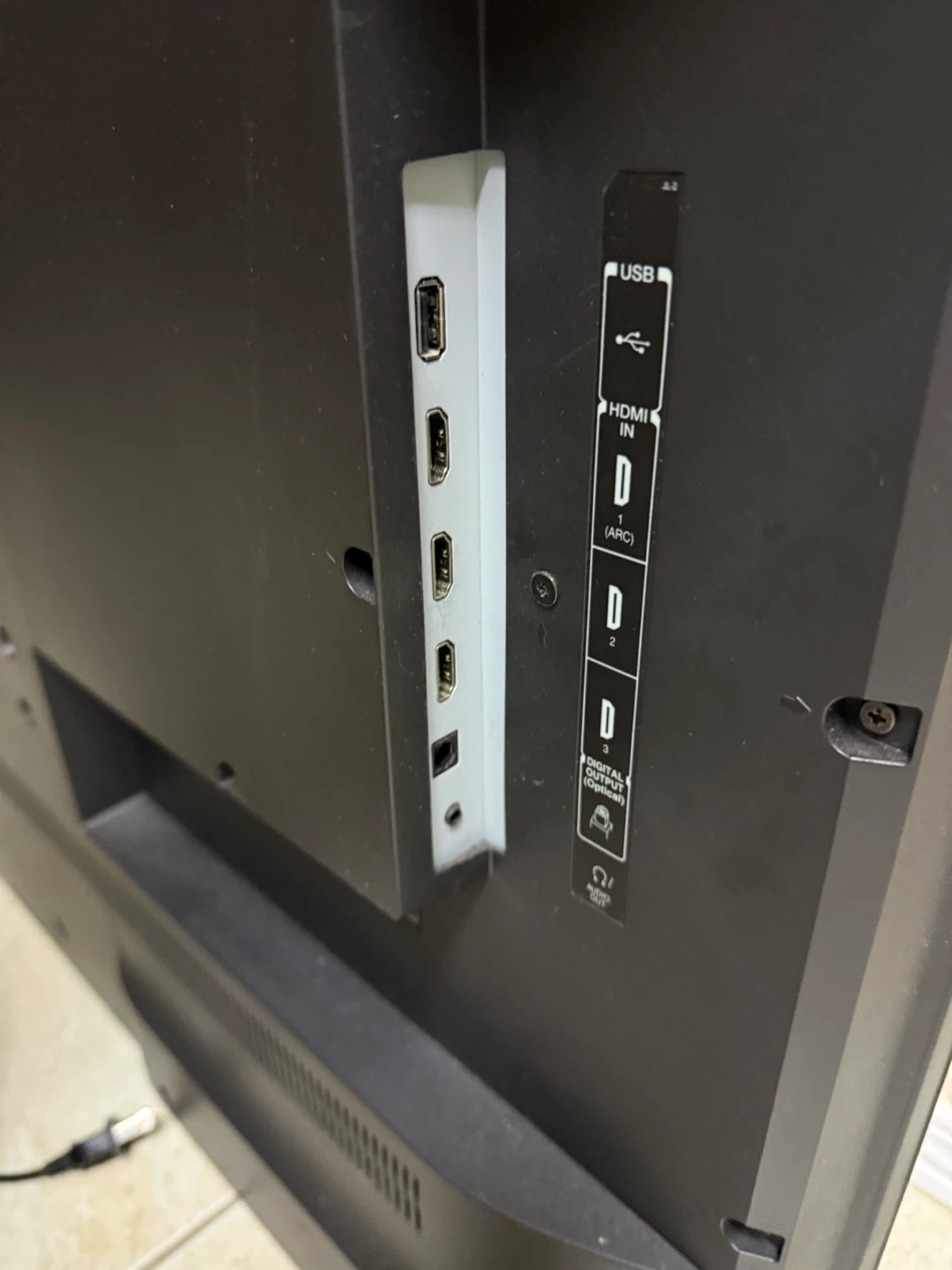 3 hdmi ports, 1 usb port, has LAN port, and AV ports
