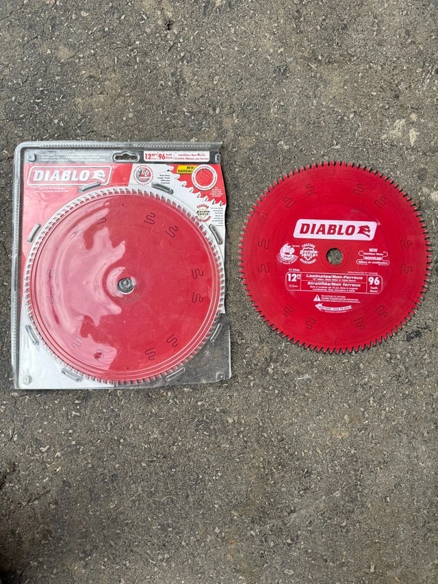 Used Diablo 12-inch x 96 Tooth Carbide Tipped Mitre/Table Saw Blade for Laminate/Aluminum Cutting. In good condition. Perfect for your next project! Blade Diameter: 12 inch, Teeth: 96, Application: Laminate/Aluminum Cutting. If the ad is up, it's available!