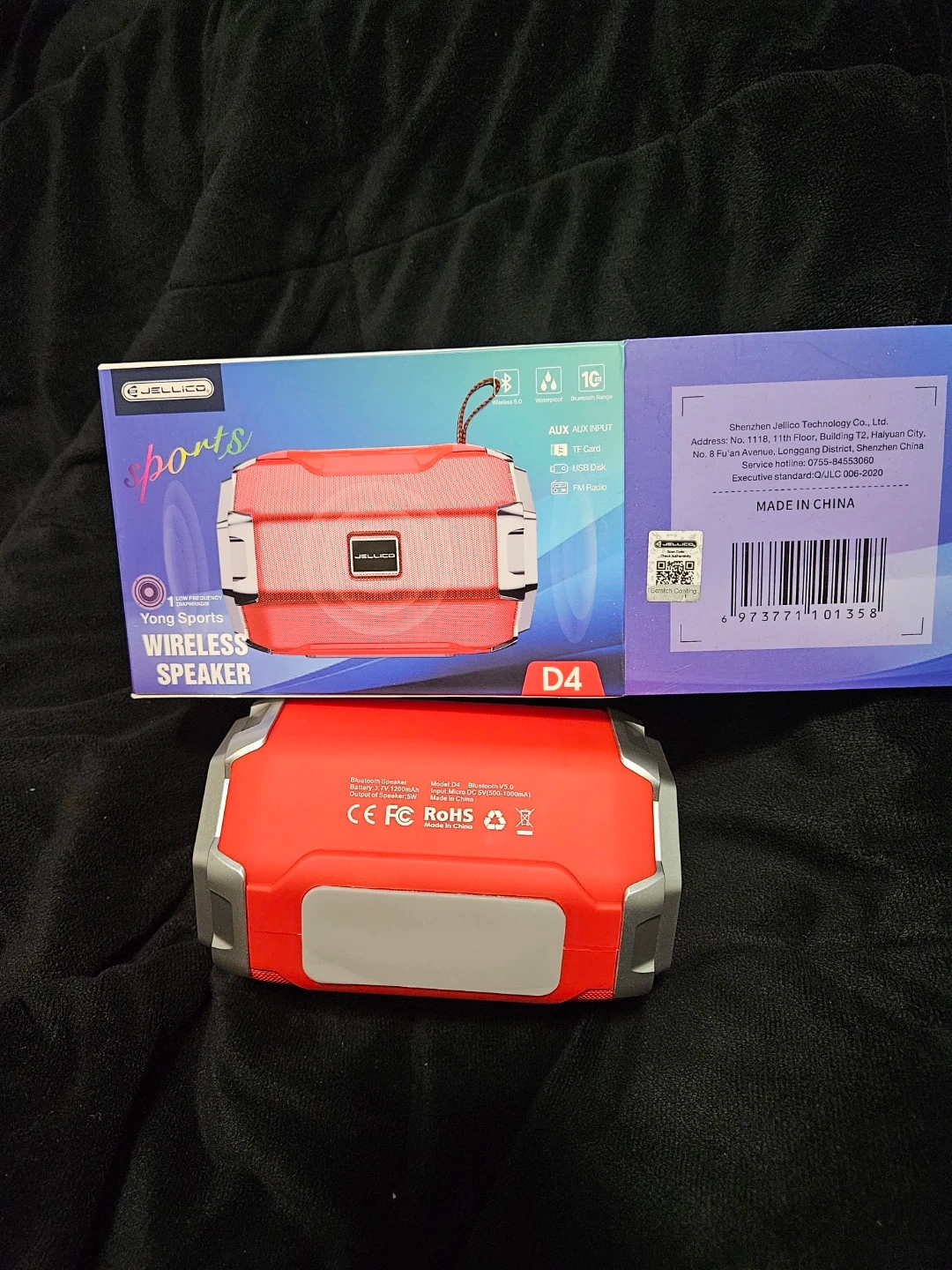 10Bring your music anywhere with the Jellico D4 Sports Wireless Speaker — stylish, durable, and powerful! ✅ Features: 🎶 High-quality stereo sound with strong bass 📱 Bluetooth connectivity for easy pairing with phones, tablets, and laptops 💧 Water-resistant – perfect for outdoor use, travel, or workouts 🎧 AUX input for wired connection 💾 TF card & USB support for direct music playback 📻 Built-in FM Radio Long-lasting battery life 🧱 Design: Compact, rugged, and portable — comes with a carrying strap for convenience. 📦 Condition: 100% Brand New, Unused, in box Perfect for home, outdoors, parties, or gym use! 💰 Price: 45$ 📍 Pickup Location M6K2B1