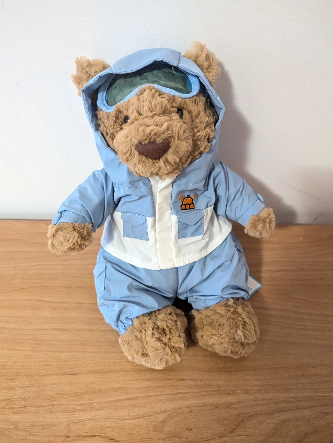This Jellycat bear is ready for the slopes in its adorable blue ski suit! It's in great condition and looking for a new home. The bear is super soft and cuddly, perfect for kids or collectors