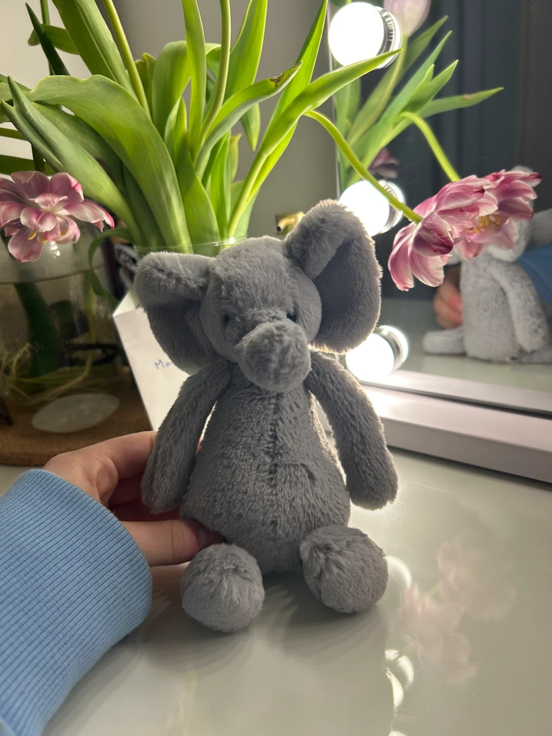 25Selling a super cute Jellycat elephant plush! It's in great shape and ready for a new home. This soft and cuddly elephant is perfect for kids and adults alike. It's a lovely grey colour and made of a really nice material, making it extra huggable