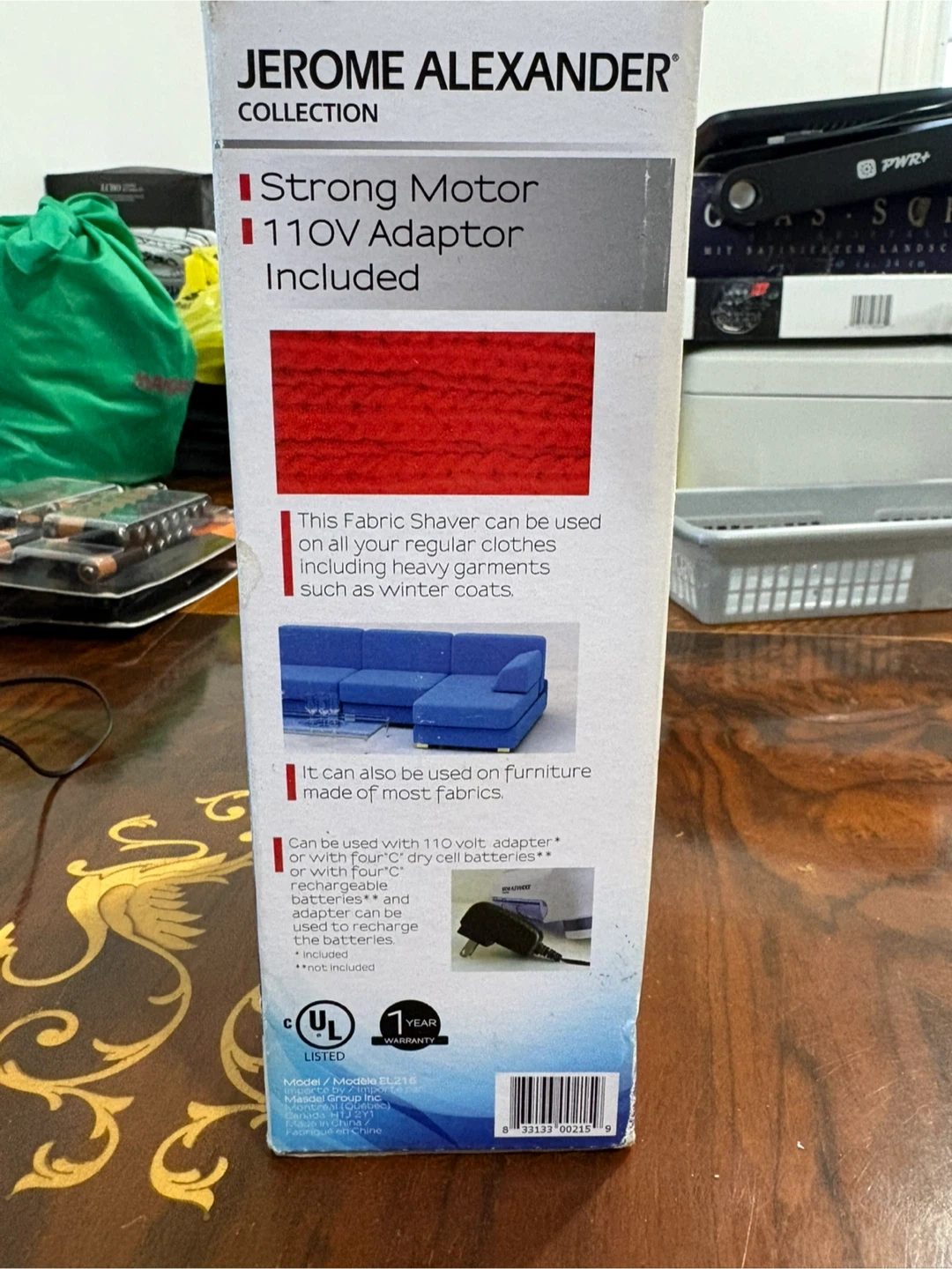 This Jerome Alexander Collection Deluxe Fabric Shaver is designed to keep clothes and fabrics looking new. It features a strong motor and comes with a 110V adaptor. It's suitable for regular clothes, heavy garments, and even furniture made of most fabrics.