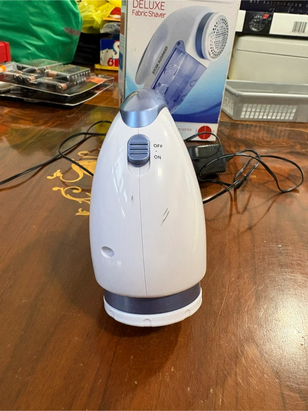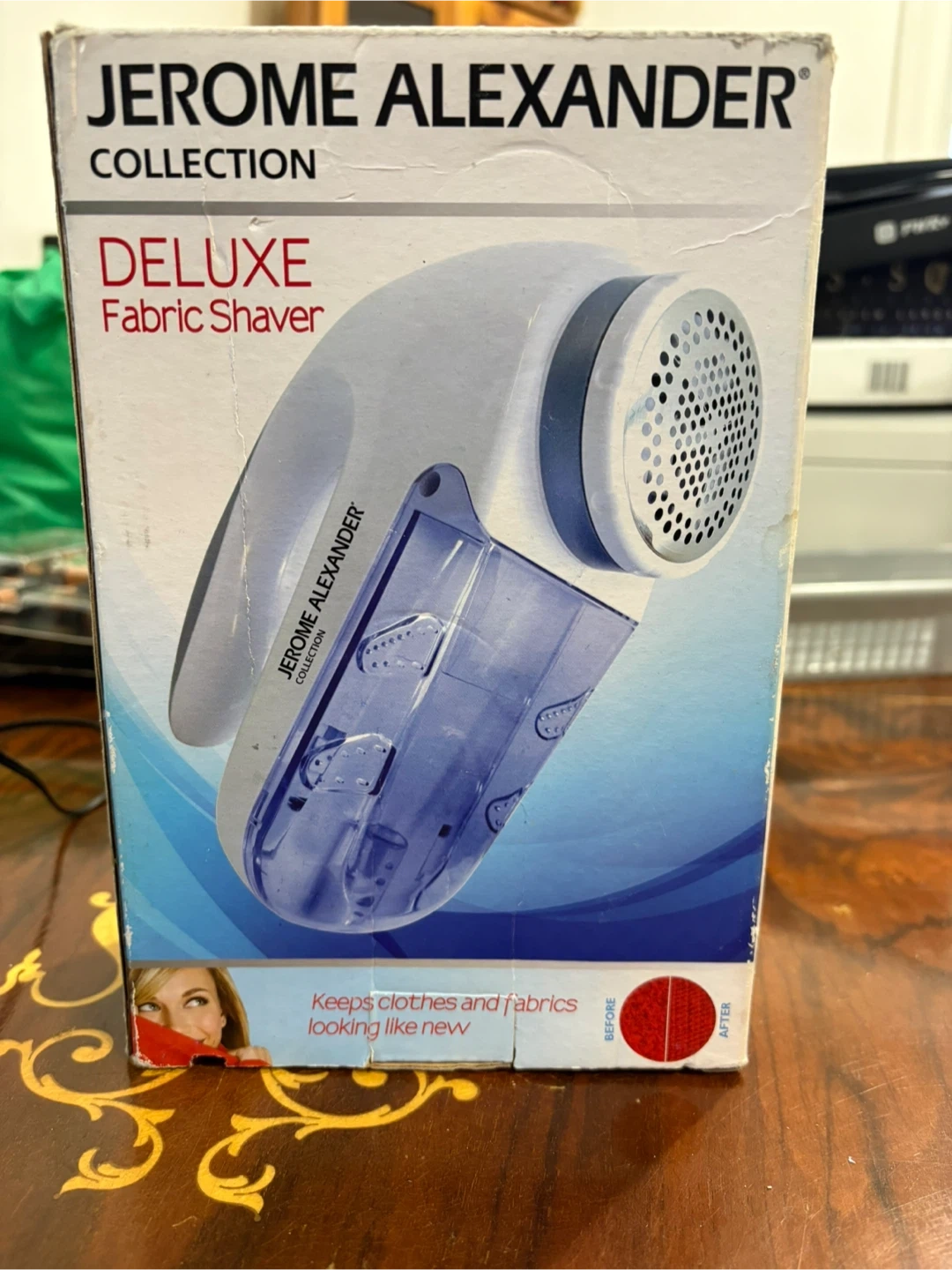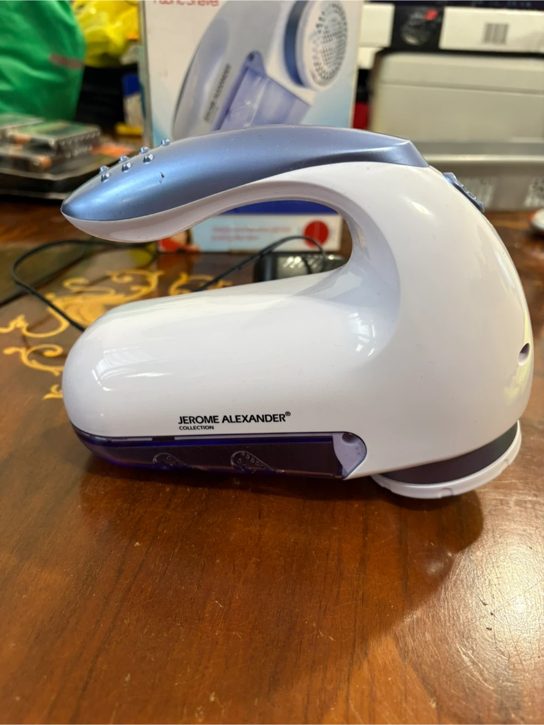 This Jerome Alexander Collection Deluxe Fabric Shaver is designed to keep clothes and fabrics looking new. It features a strong motor and comes with a 110V adaptor. It's suitable for regular clothes, heavy garments, and even furniture made of most fabrics.