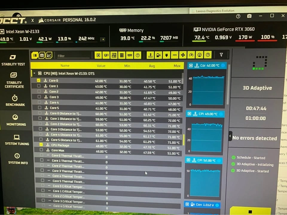 Fully stress-tested: 72°C under OCCT 3D Adaptive ✅