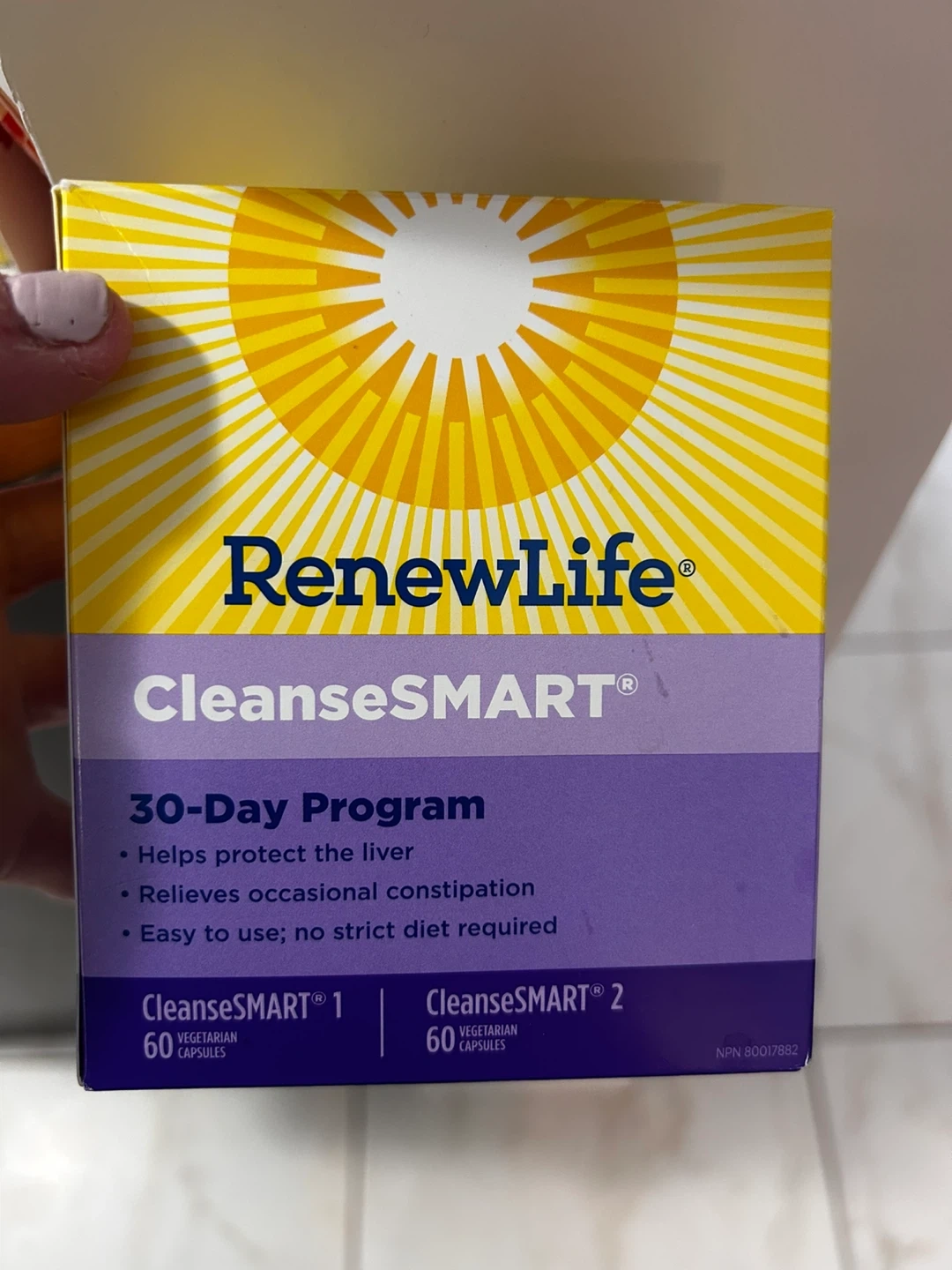 Brand new ! Renew Life CleanseSMART 30-Day Program. Includes 2 bottles, 60 vegetarian capsules each. Expiry date is February 2027. This program helps protect the liver and relieves occasional constipation.