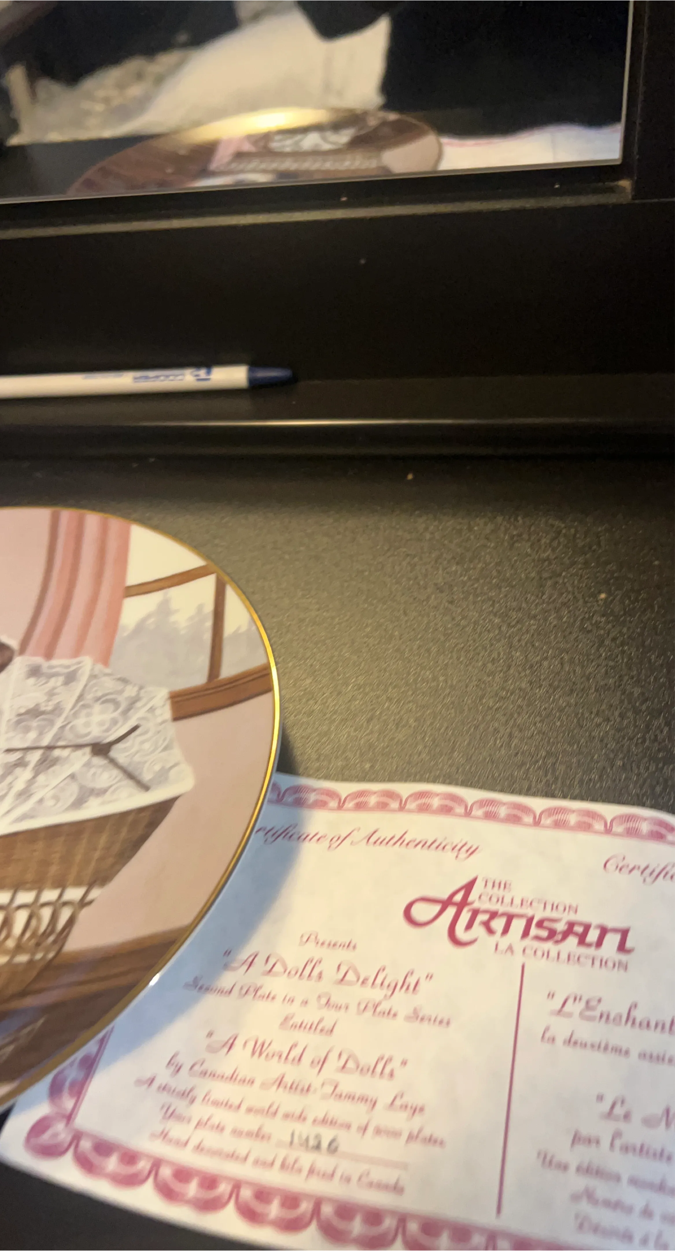 This is the second plate in a Four Plate Series, entitled "A World of Dolls". It's by Canadian Artist Tammy Laye. This is a strictly limited worldwide edition of 4000 plates. Hand-decorated and kiln-fired in Canada.