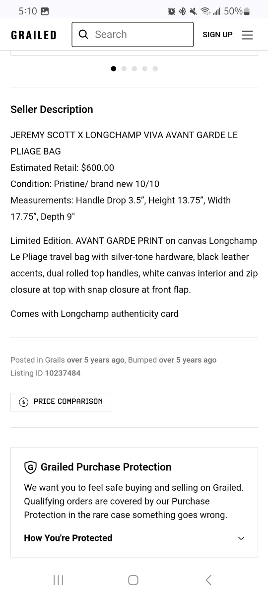 1000+***AUTHENTIC*** Limited edition Jeremy Scott x Long Champs Le Pliage bag. Avant Garde print on canvas, travel size/weekender bag with silver-tone hardware, black leather accents, dual rolled top handles, white canvas interior and zip closure at top with snap closure at front flap. ***Large Weekender size*** Some minor signs of wear. Used for one season.