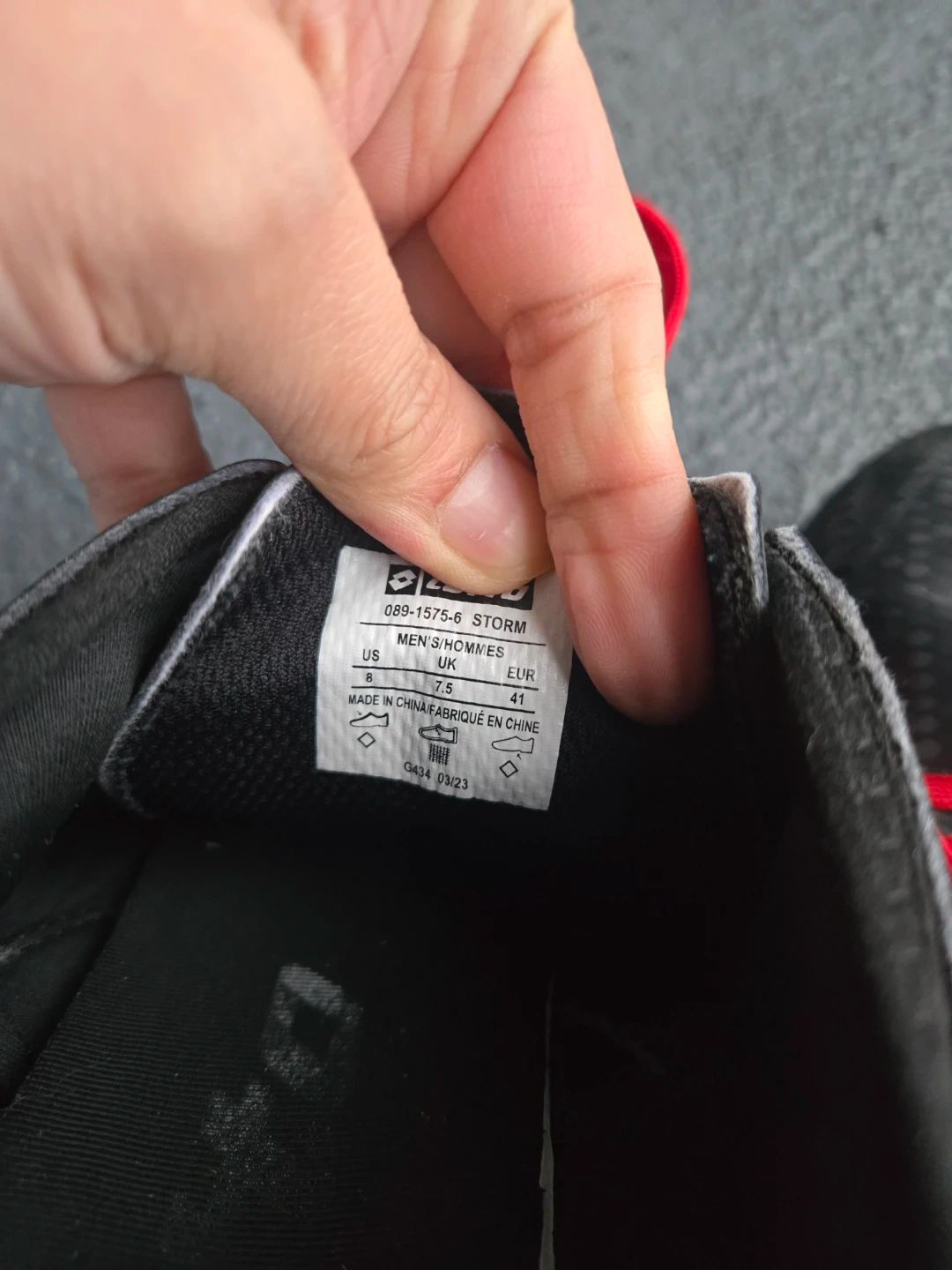 Diadora soccer cleats, size US men's 8. They're black with red laces and accents. These cleats are made for men's/hommes. They have a synthetic upper and rubber sole.