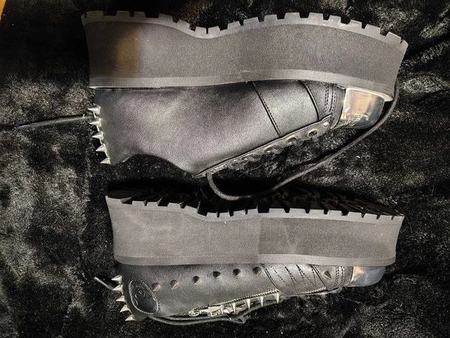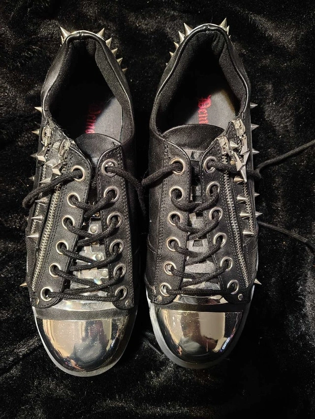 Purchased for a concert but got sick and never ended up wearing them. Shoes are in great condition. Steel on the toes has some excess glue and marks but that's how they came. Only ever worn for a few minutes trying them on and walking around my apartment.