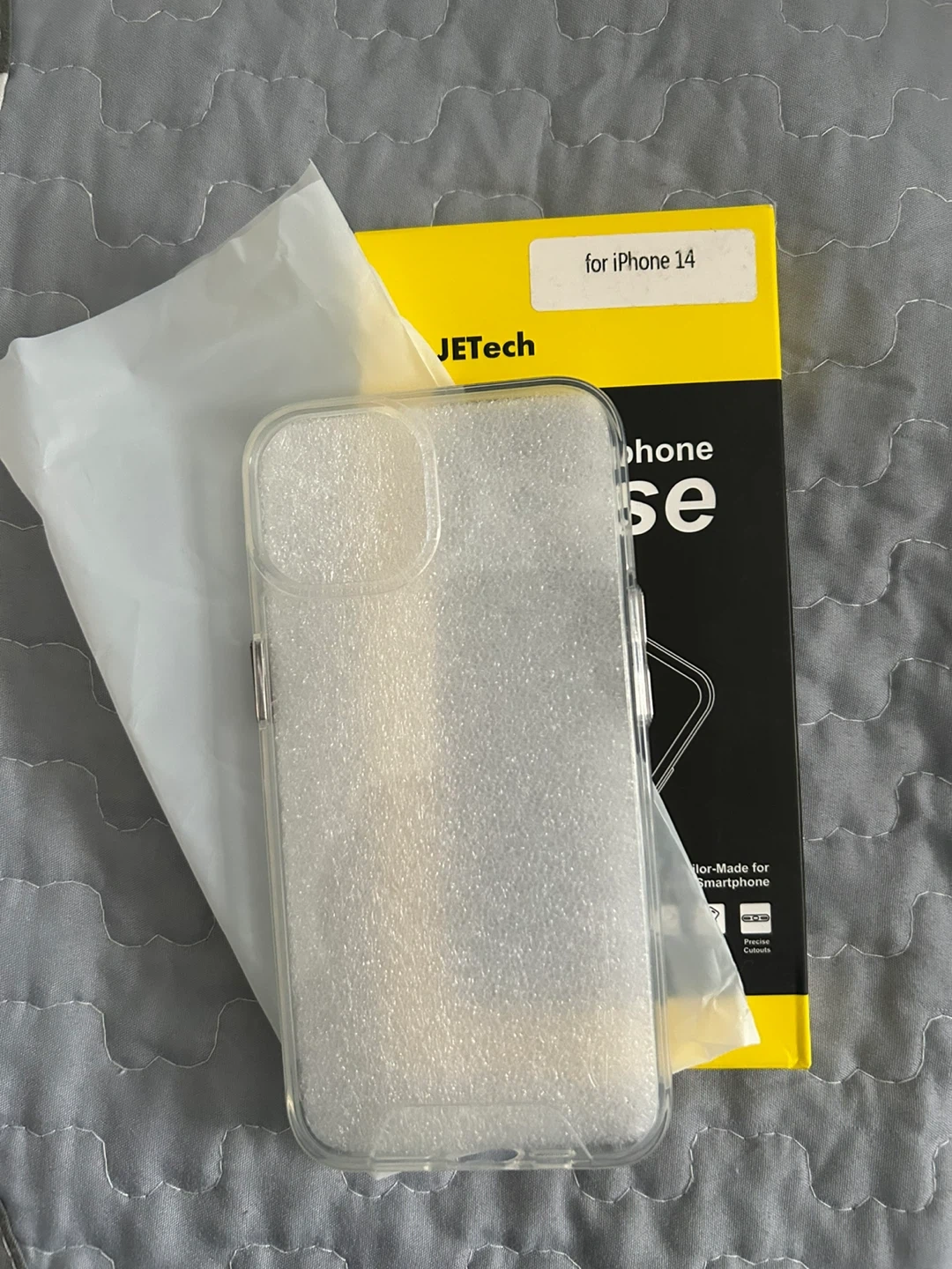 Selling a brand new JETech clear phone case for the iPhone 14. It's still in its original packaging and ready to protect your phone!