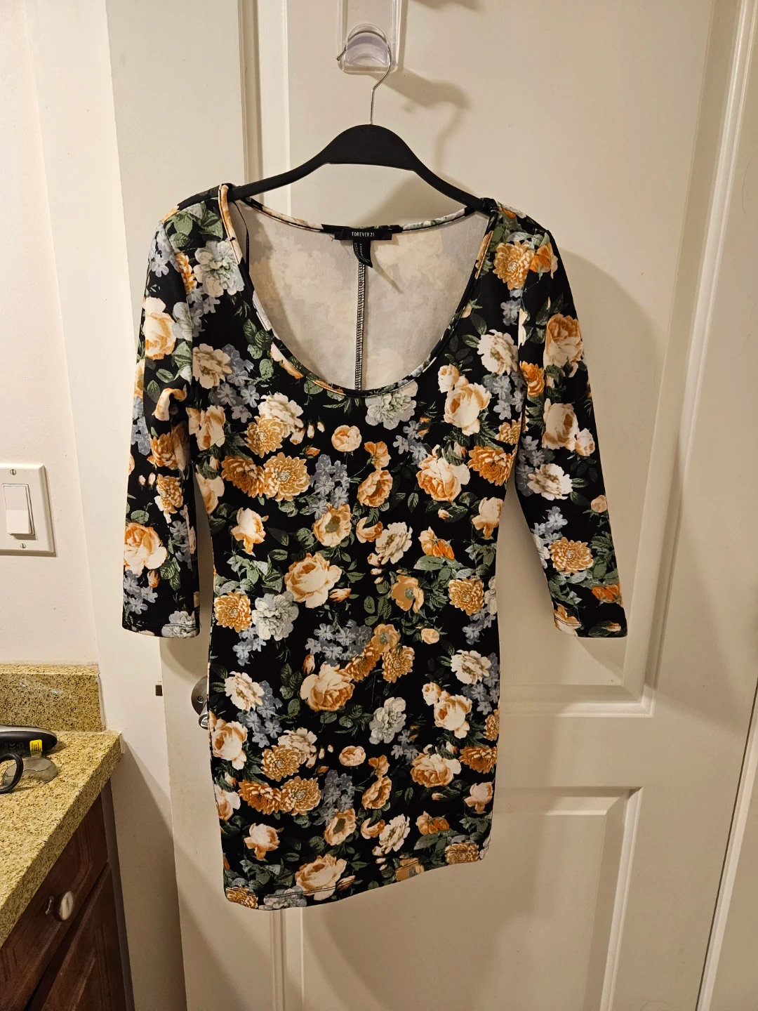 Medium Forever 21 Floral Print 3/4 Sleeve Mini Dress