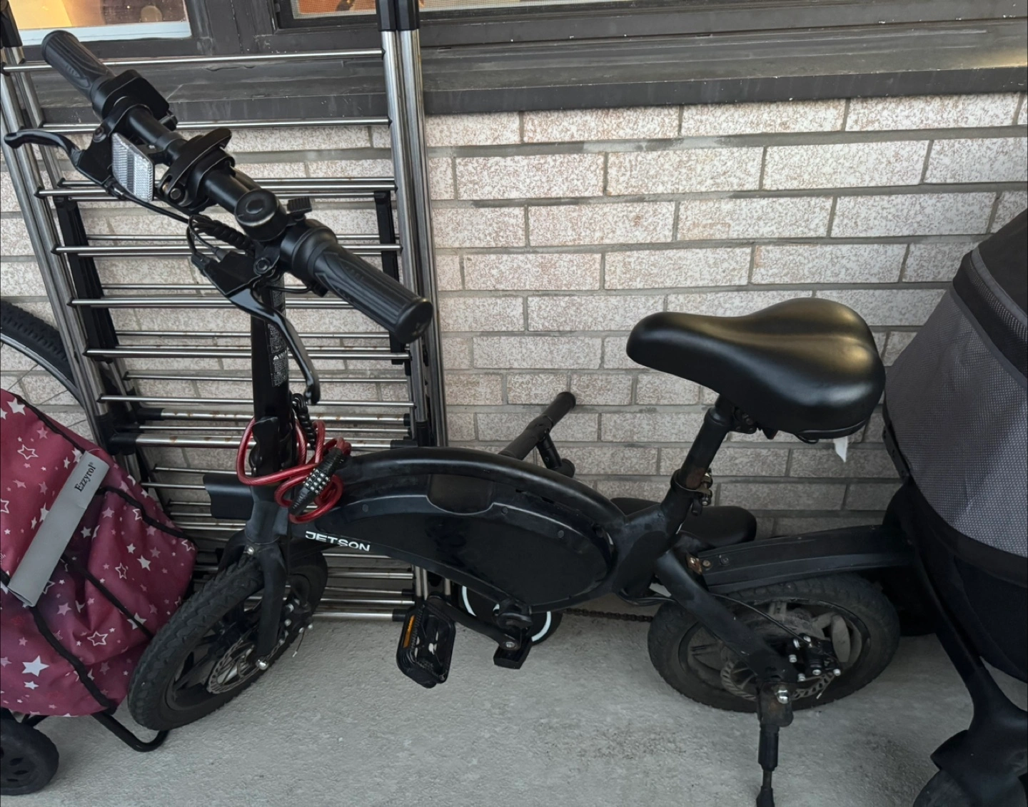 Black electric children's bicycle. Small size. Good condition. Includes lock.