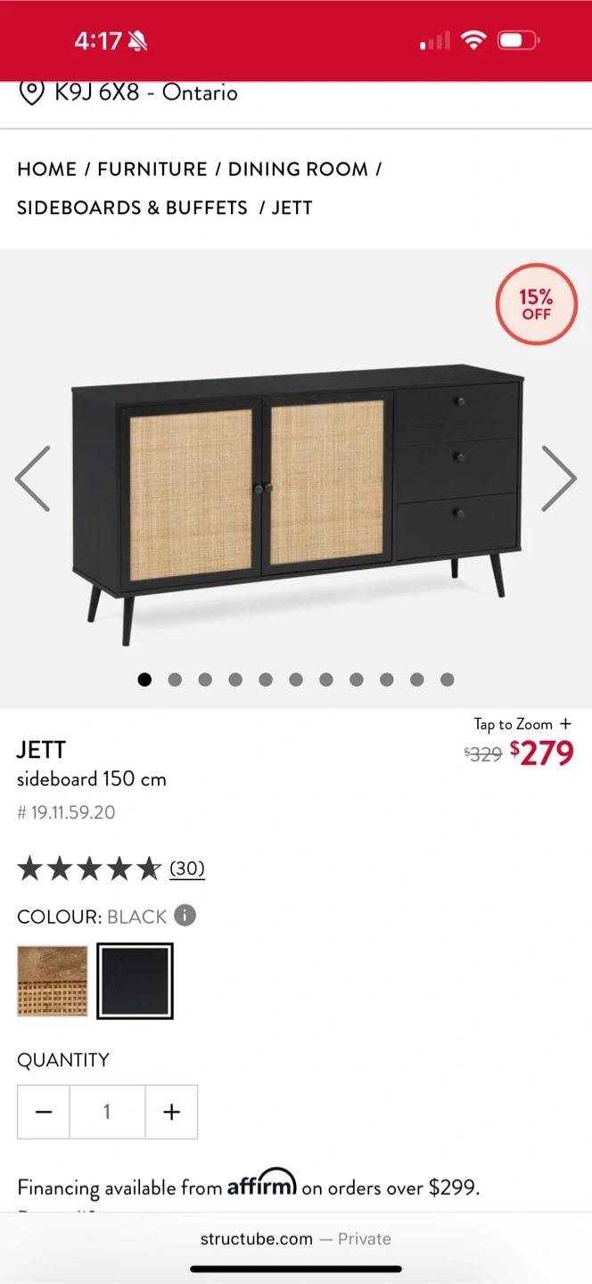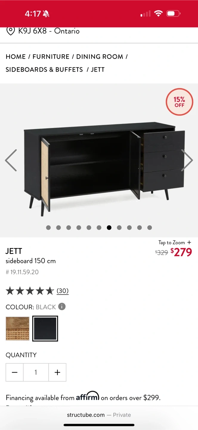 65Selling a black Jett sideboard, 150 cm in size! It's perfect for a dining room or living room. A stylish piece of furniture to add to your home!