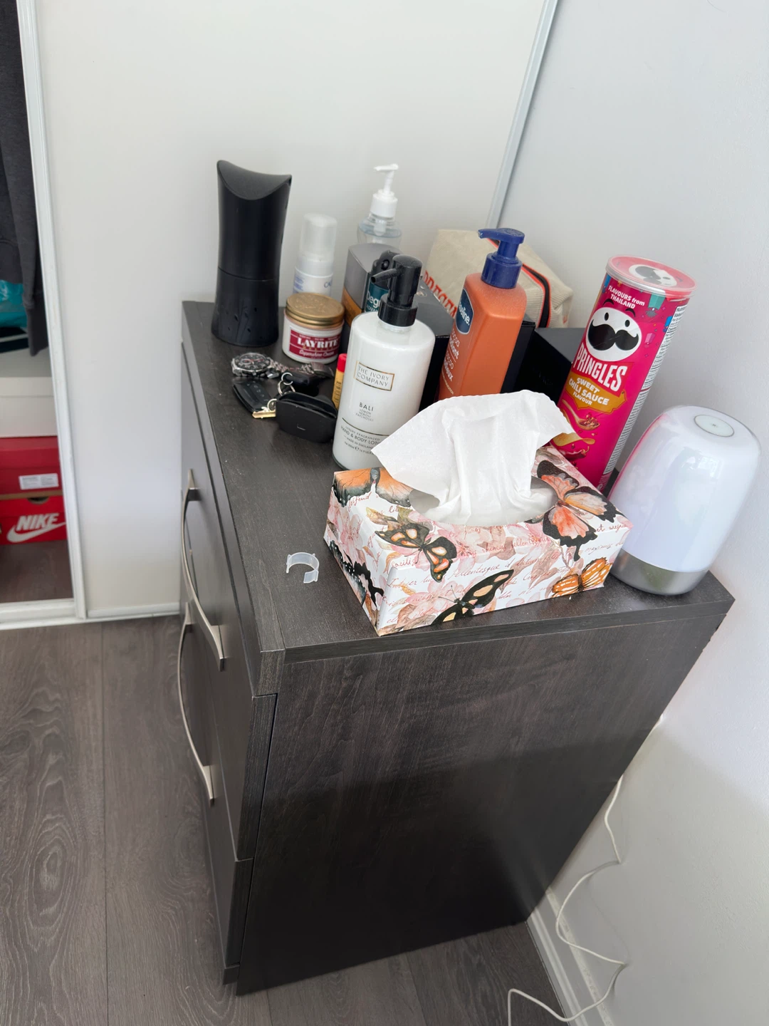 The sturdy top surface is perfect for a lamp, clock, or decorative items.