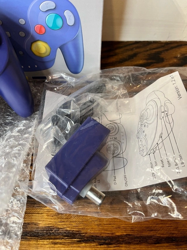 Relive your favorite GameCube games with this indigo NGC wireless controller! This controller is in new condition, offering a comfortable grip and responsive controls for a seamless gaming experience. It's ready to plug and play, letting you dive straight into your gaming adventures. * Wireless connectivity * Compatible with GameCube consoles and Wii consoles. * Ergonomic design for comfortable play * Includes receiver. Cash accepted. Cashless payment accepted.