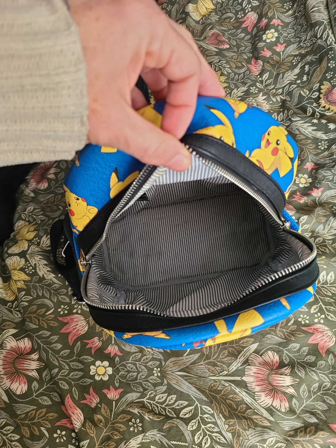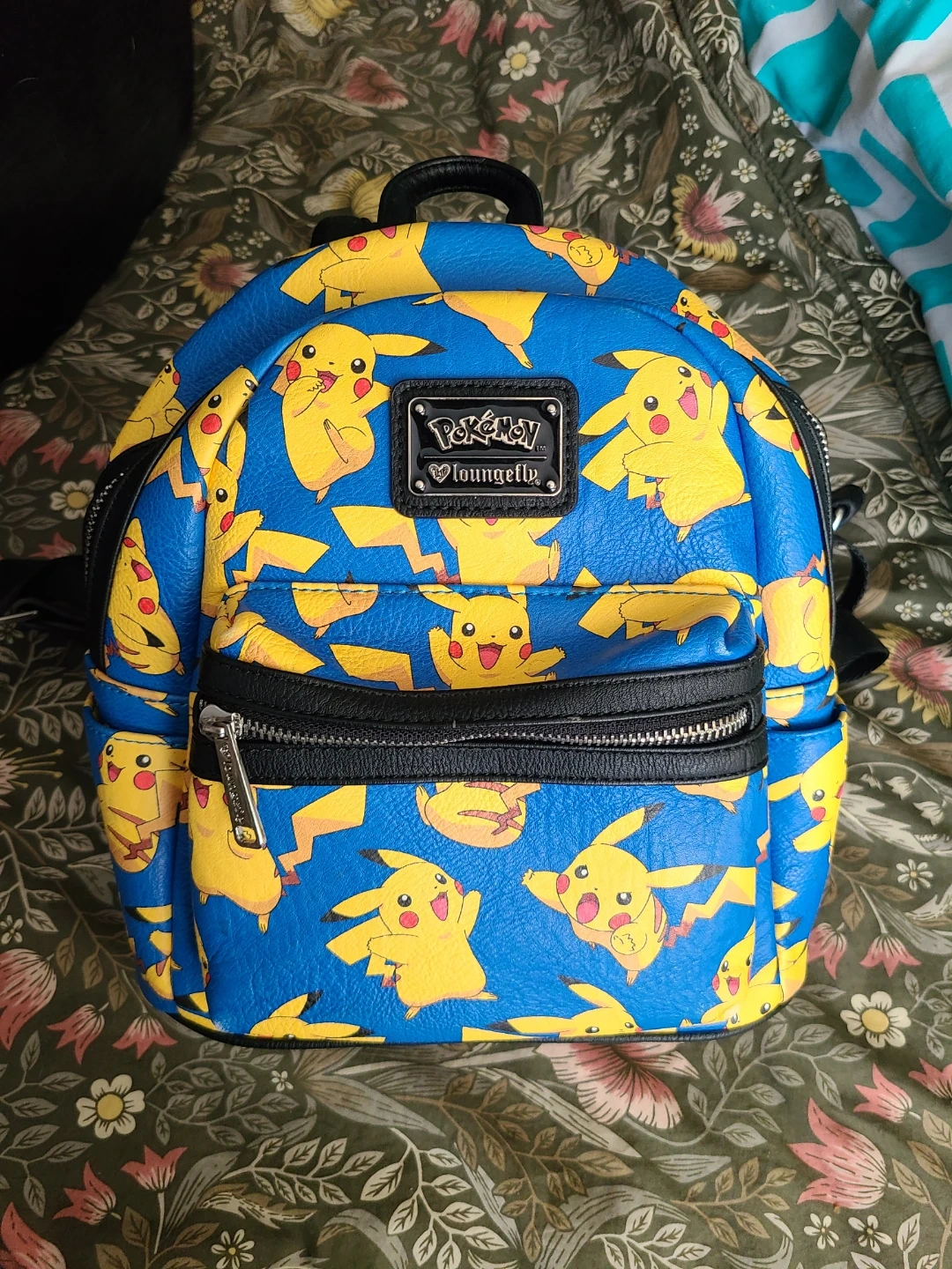 This Loungefly mini backpack features a fun all-over Pikachu print. It's made from faux leather and has adjustable straps for comfort. Features one exterior pocket. It's a great size for essentials!