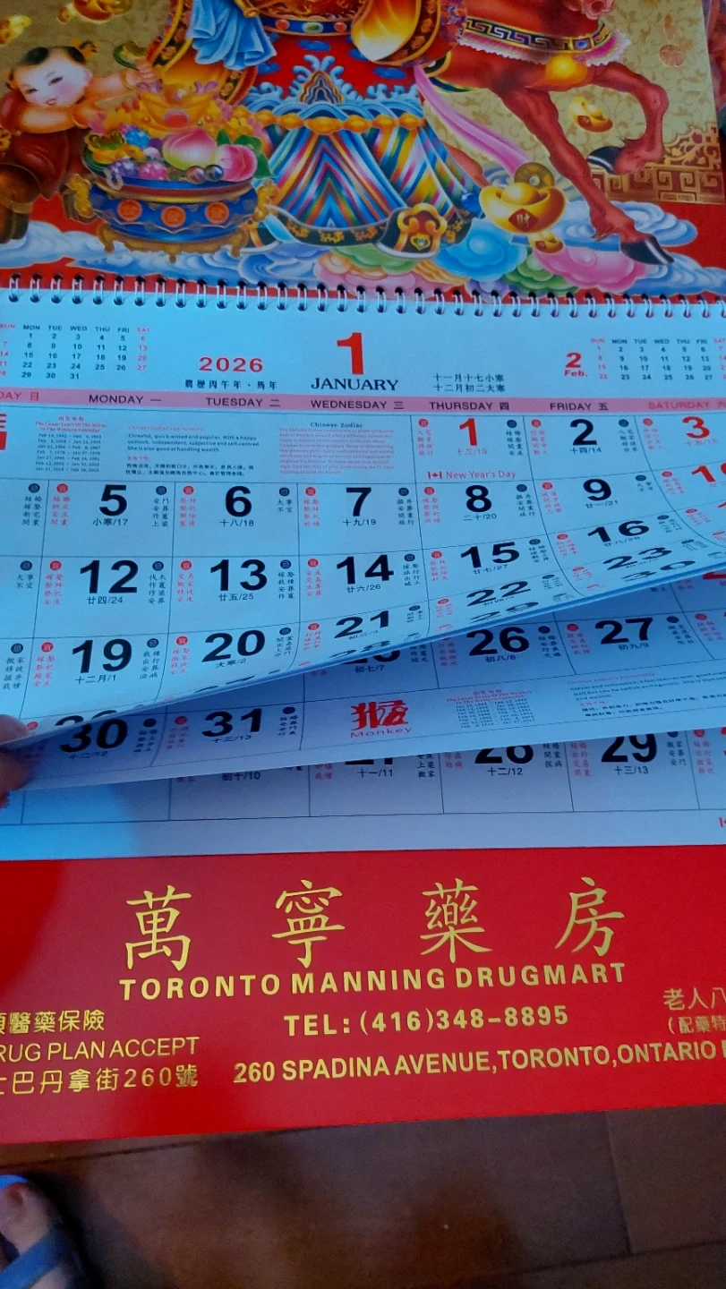 Chinese 2026 Calendar w Lunar/Georgian Dates