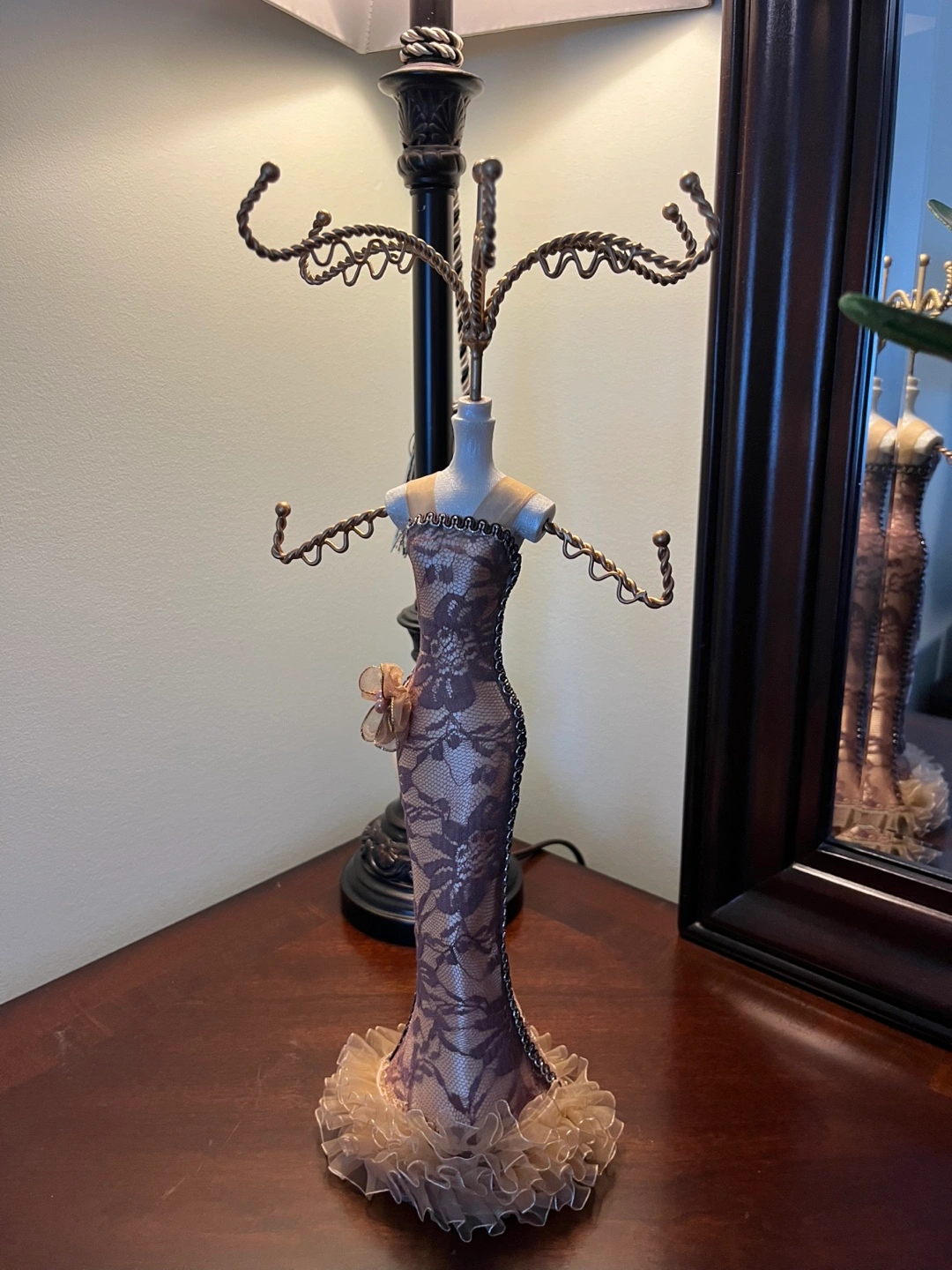 92A wonderful item to organize and showcase your favourite jewelry. Colors: blk and silver, blk and purple, beige
