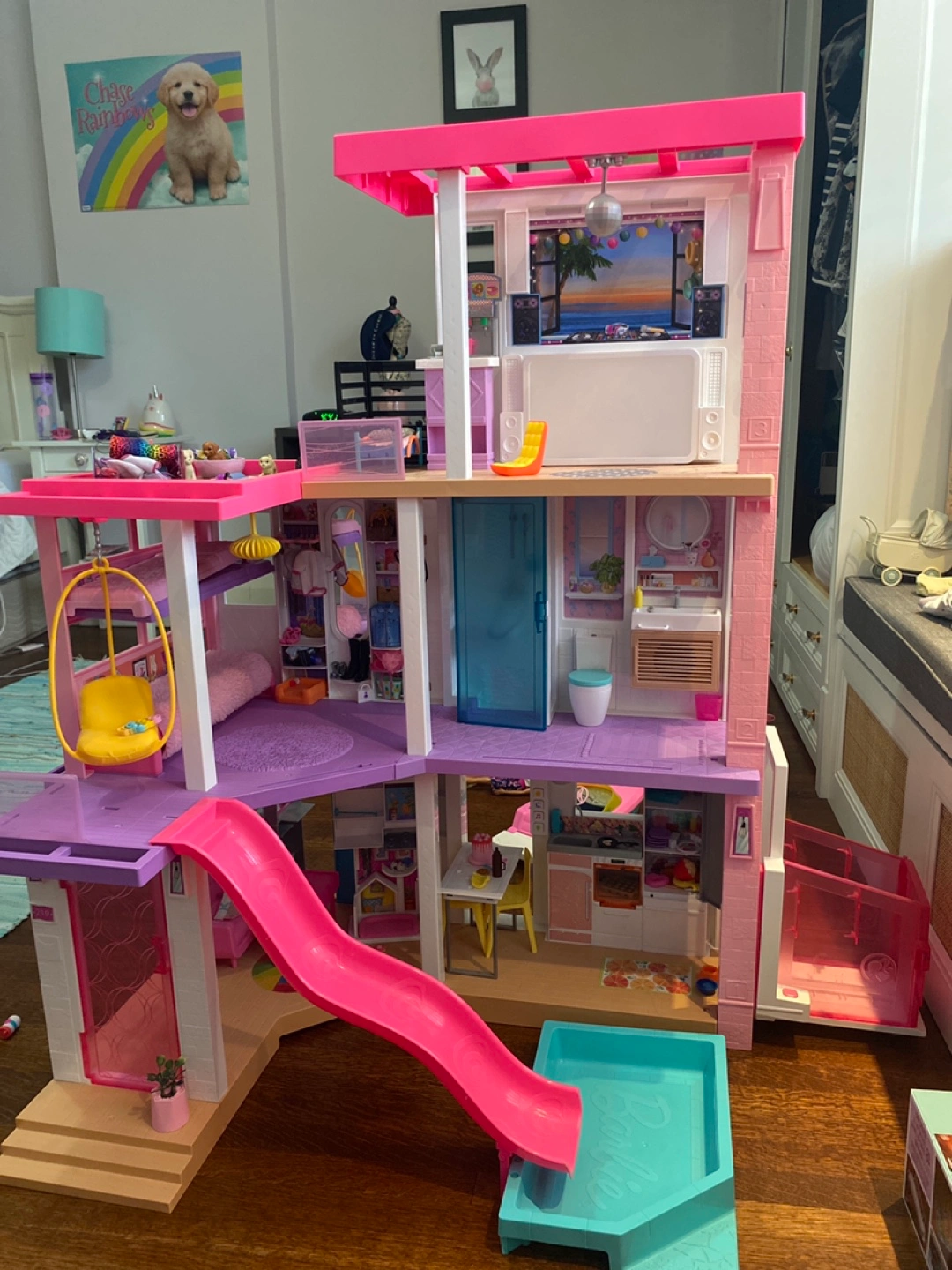 Barbie Dream House- 3 story house with roof top patio and music, elevator and pool. Excellent condition. Pick up- no delivery.