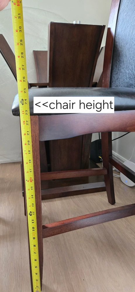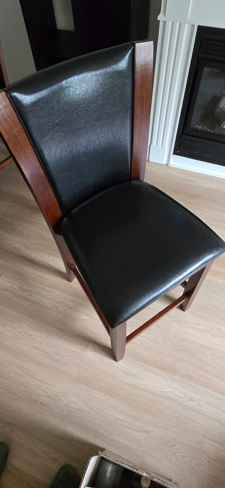 Pub Style Dining Table with 4 black leather and wood chairs