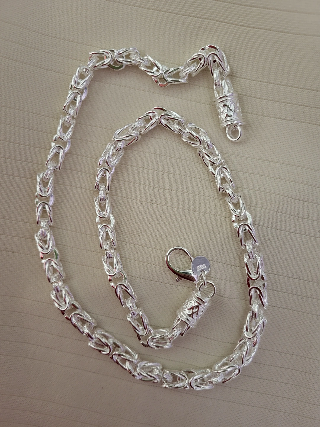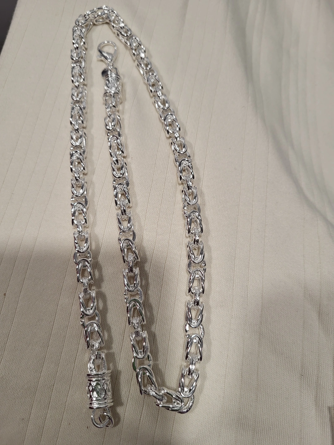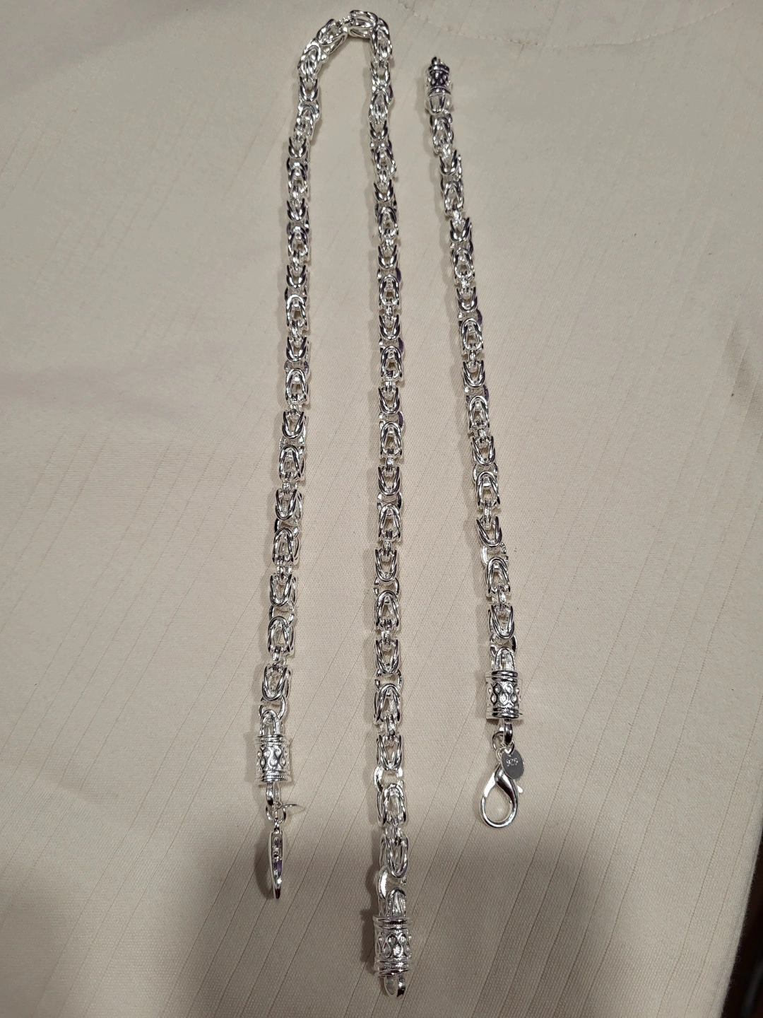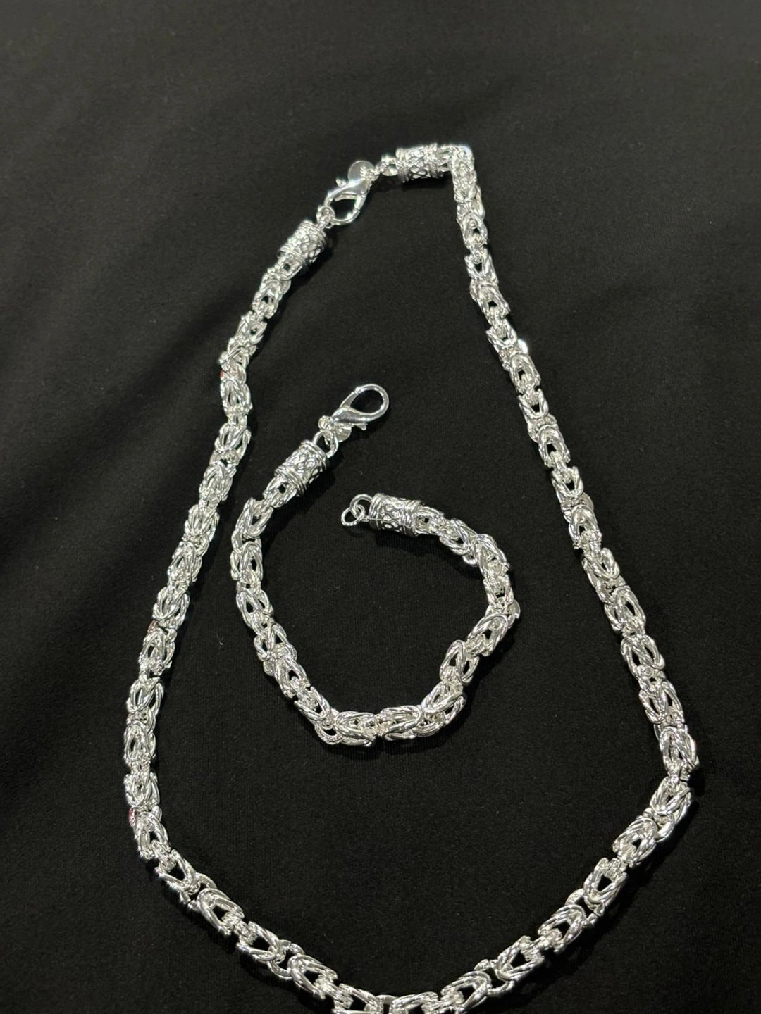 Beautiful silver Byzantine chain necklace and bracelet set. Matching designs. Lobster clasps. Excellent design