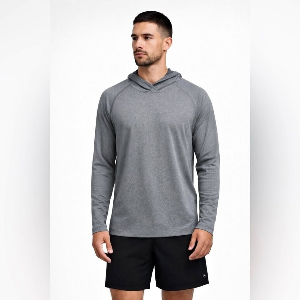 Stylish light gray Lululemon long sleeve with hoodie. Perfect for casual wear or workouts. P2P: 23 inches, Length: 30 inches. Excellent condition, no stains, pilling, or holes. From a smoke-free home.