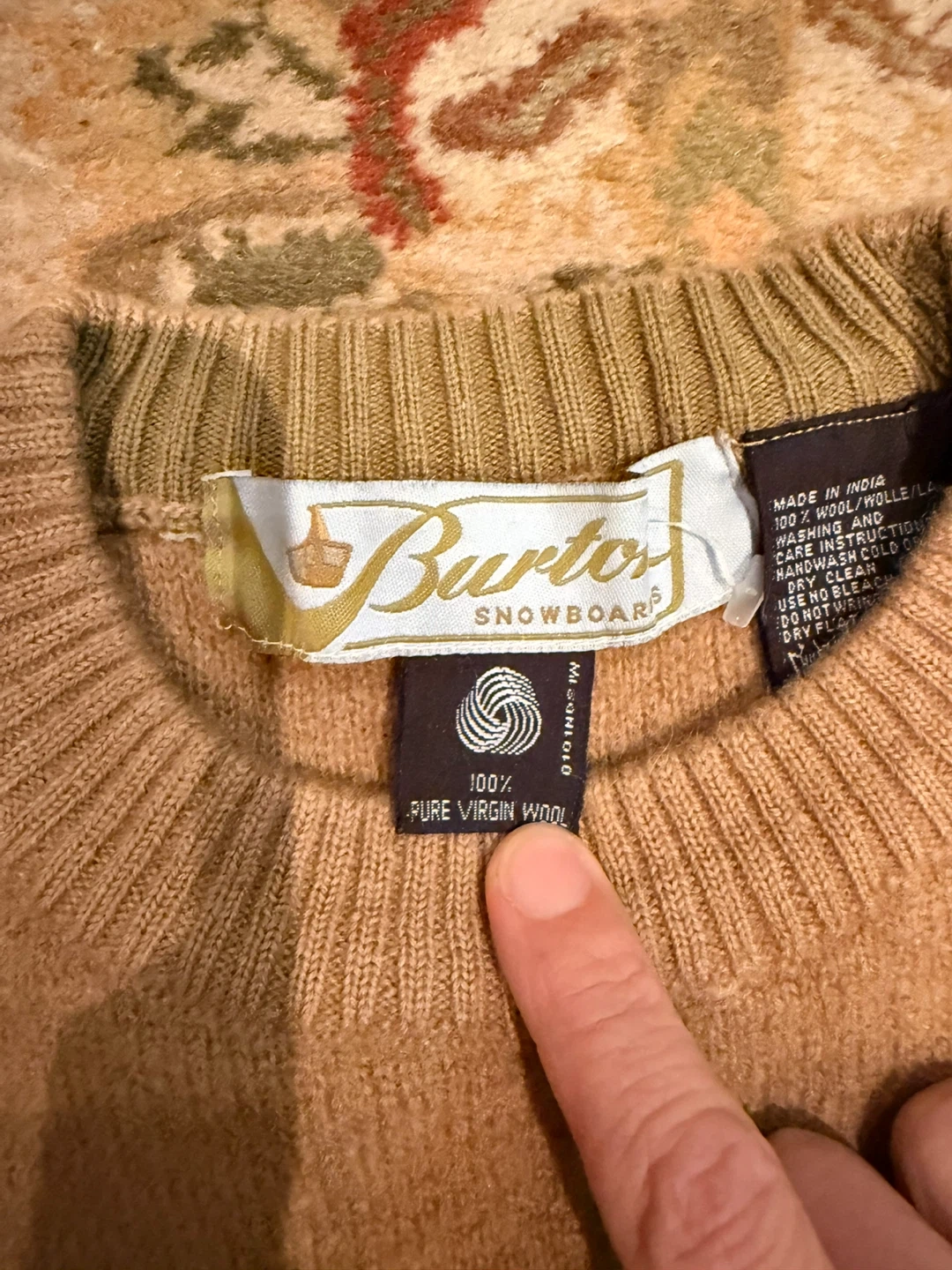 Burton Vintage 100% Virgin Wool Sweater – Camel / Tan – Made in India
