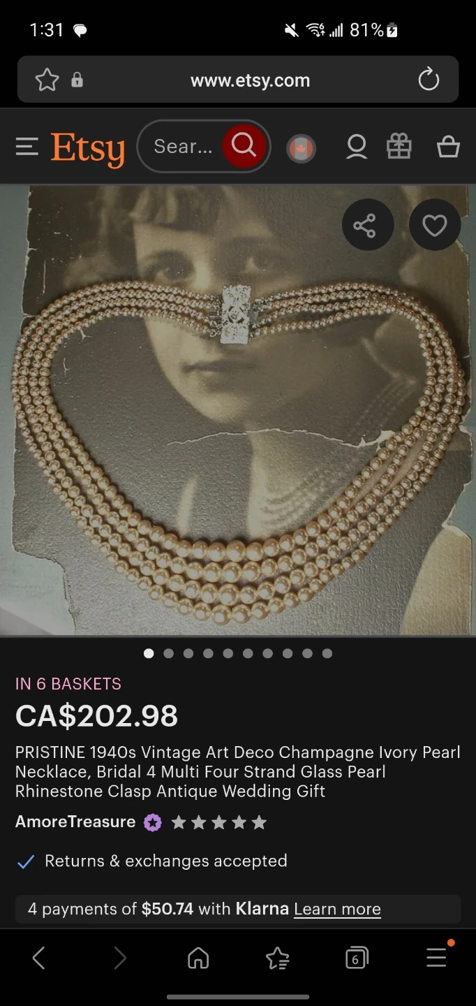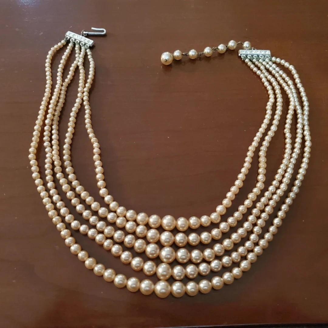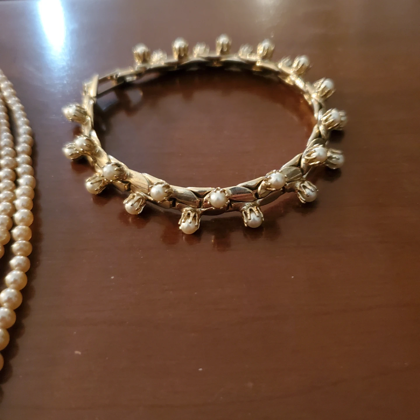 1940's 5-Strand Pearl Necklace, Bracelet & Screw Back Earrings