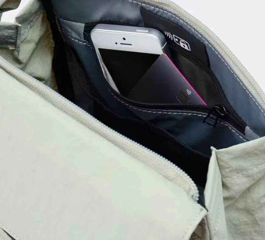 - Many pockets on the inside and outside, including a RFID protection pocket
