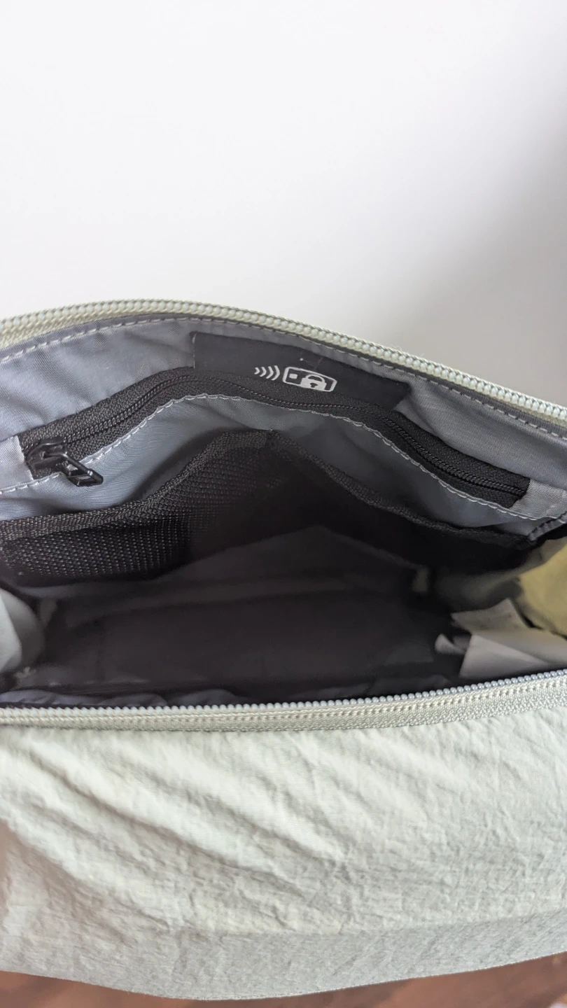 - Many pockets on the inside and outside, including a RFID protection pocket