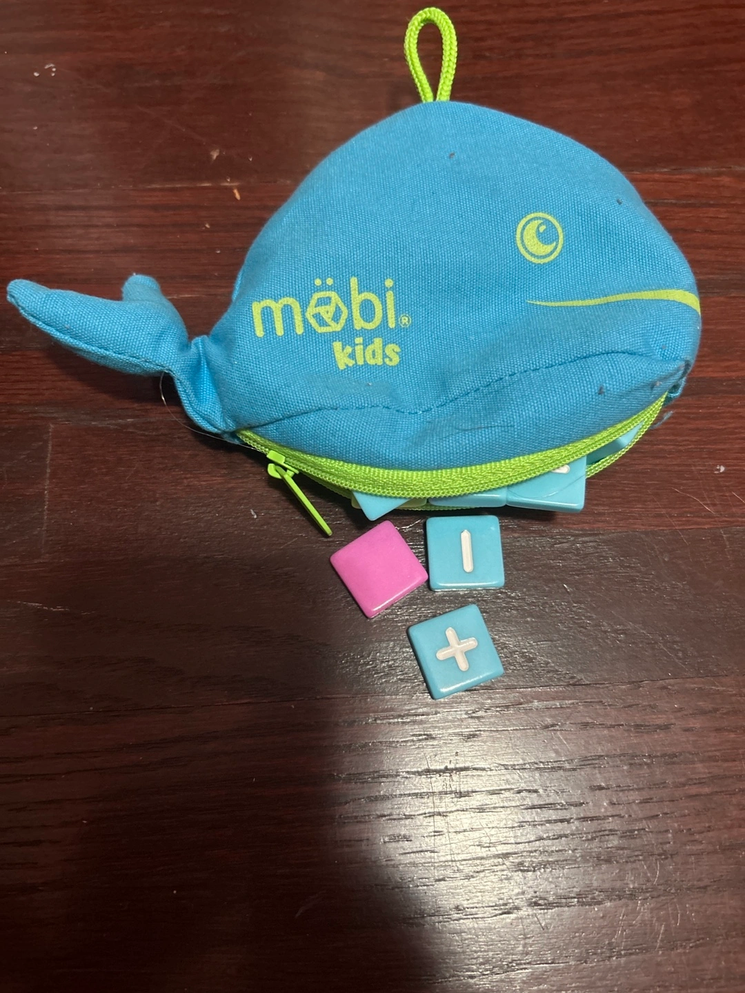 Fun math game with tiles for addition and subtraction. Comes in a cute whale pouch. Great condition!