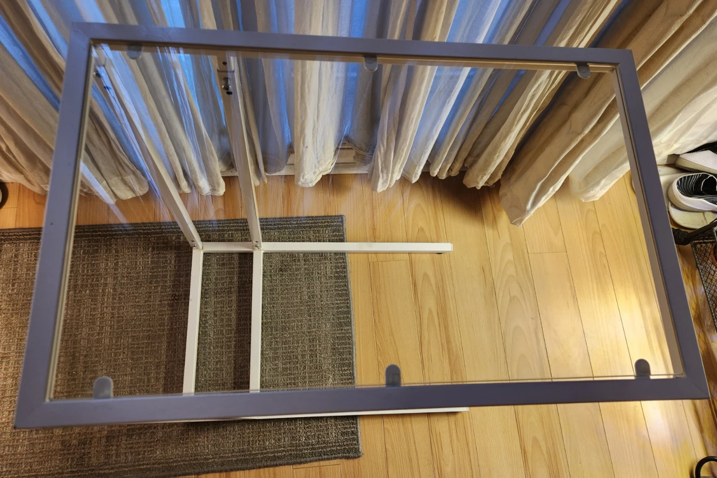 Replaced 2 of the adjustable feet with new ones, glass has a few minor scratches, metal frame has a few minor scuffs.