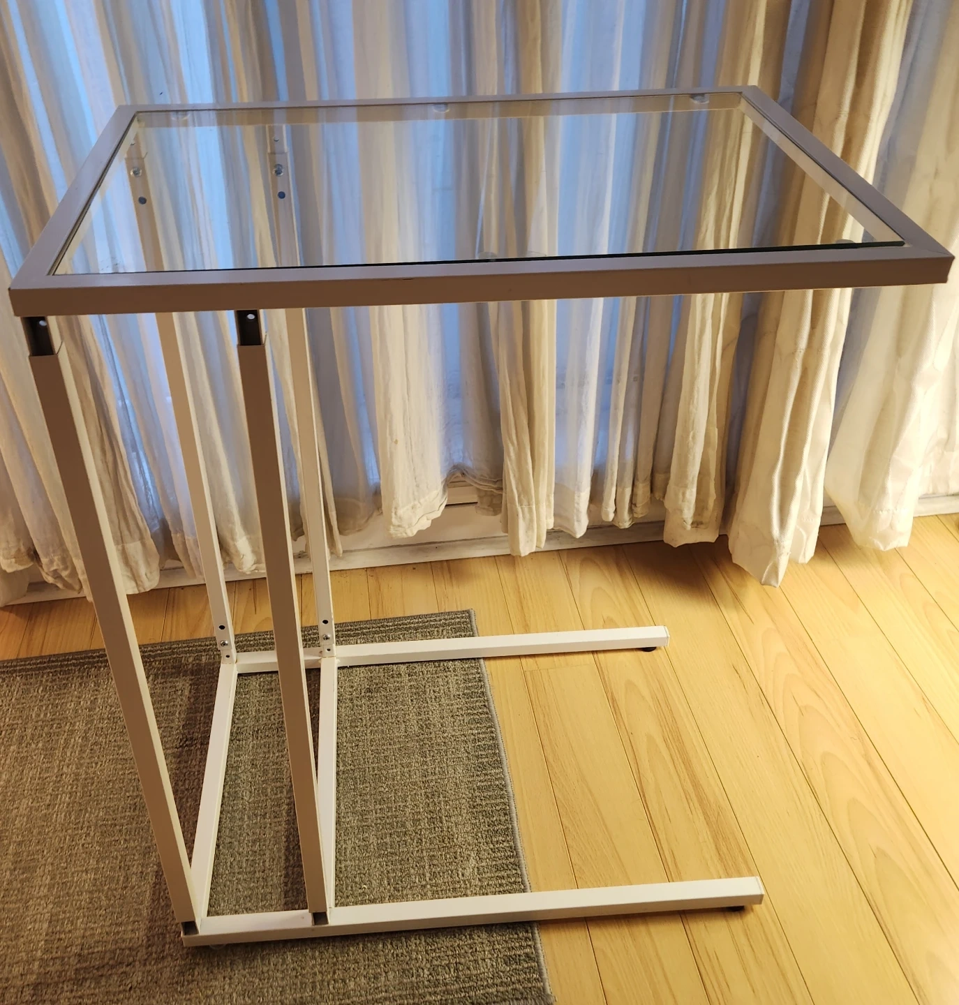 Replaced 2 of the adjustable feet with new ones, glass has a few minor scratches, metal frame has a few minor scuffs.