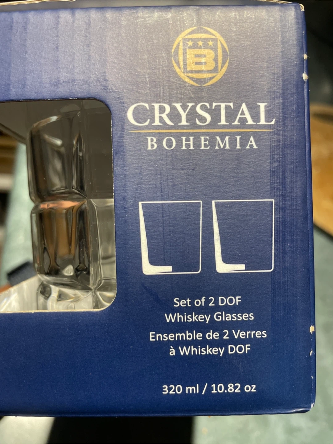 Crystal Bohemia Fine European Crystal DOF Whiskey Glasses. Set includes 2 glasses, each 320 ml / 10.82 oz. Made in Czech Republic. Never used! A lovely addition to your barware!