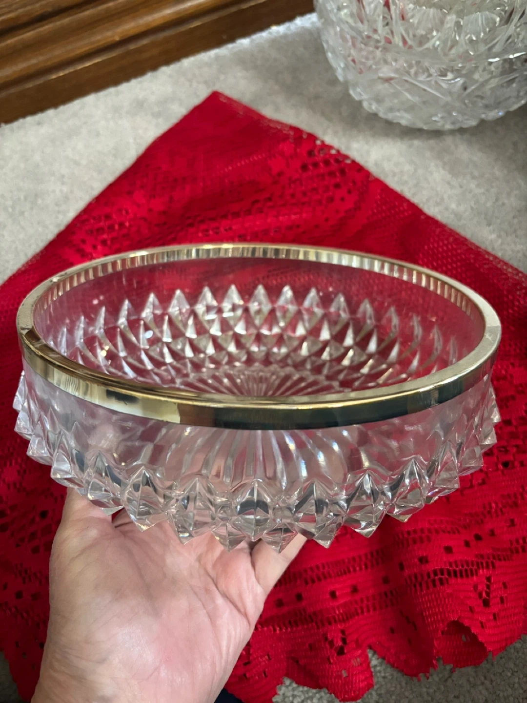 Crystal Serving Bowl with Silver Rim