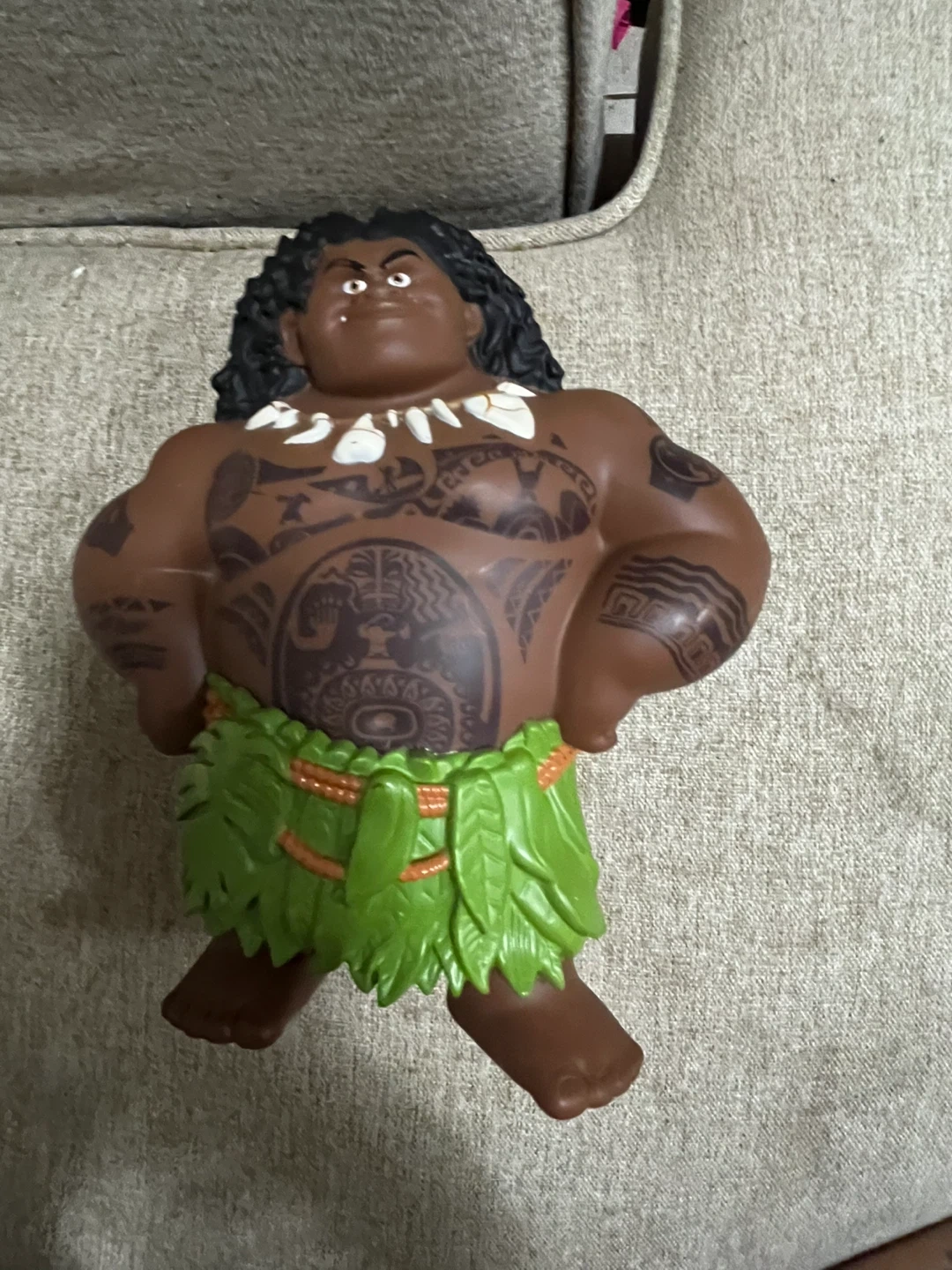 This is a Disney Moana Maui action figure. It features Maui's signature tattoos and grass skirt. Great for fans of the movie!