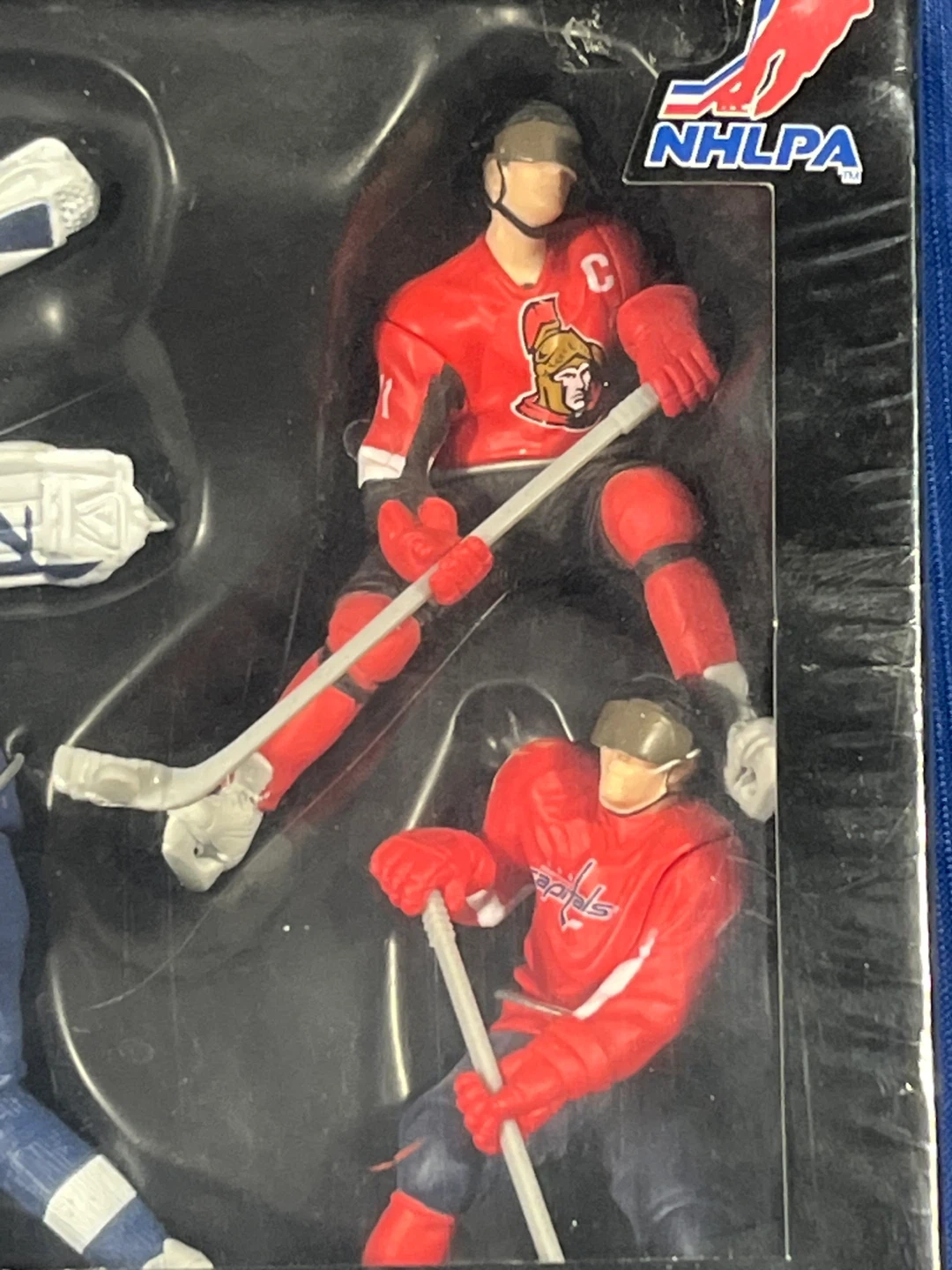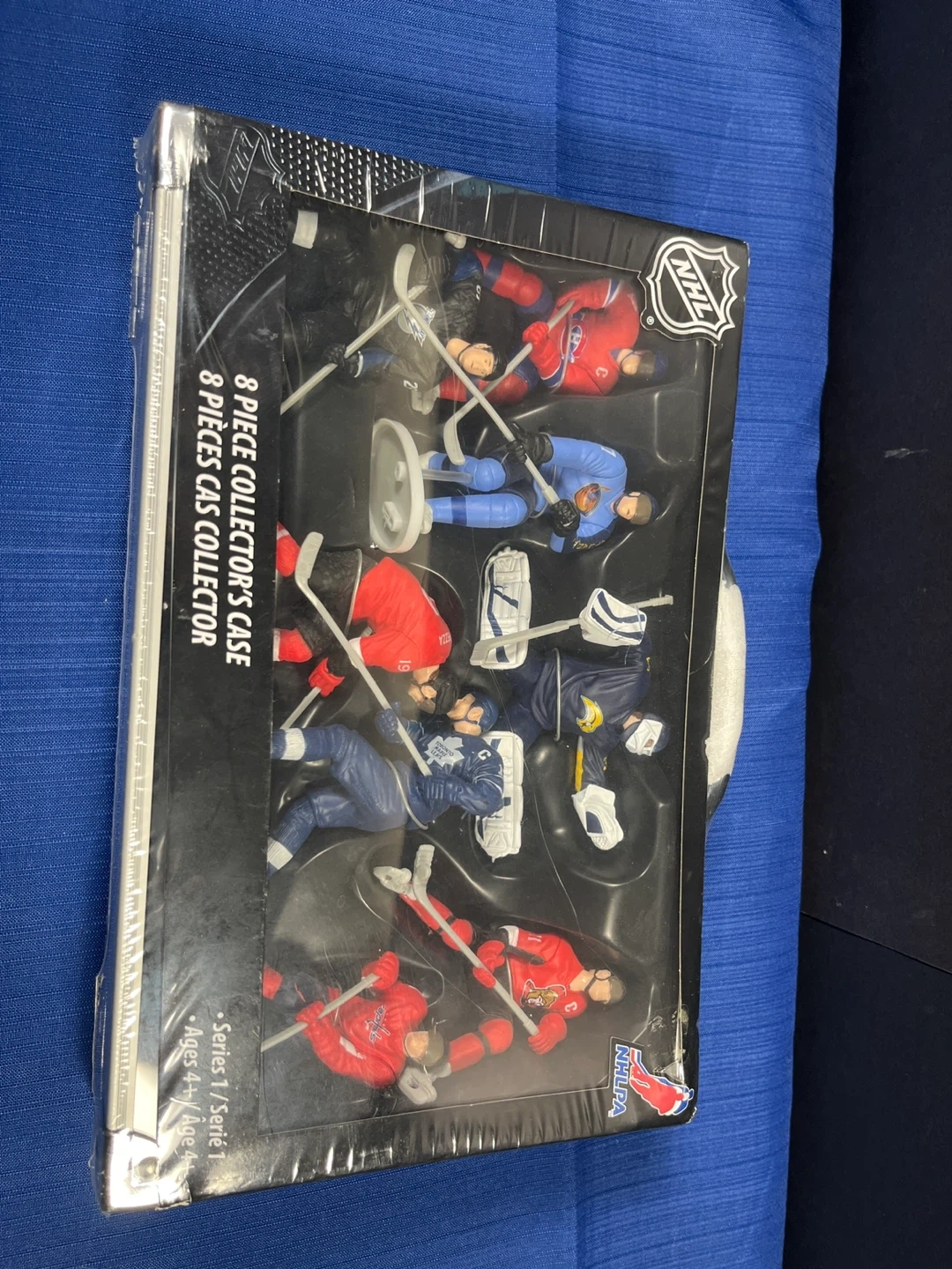 This NHL collector's case includes 8 action figures of hockey players. Figures represent players from various NHL teams like the Montreal Canadiens, Toronto Maple Leafs, and Ottawa Senators. Ages 4 and up.