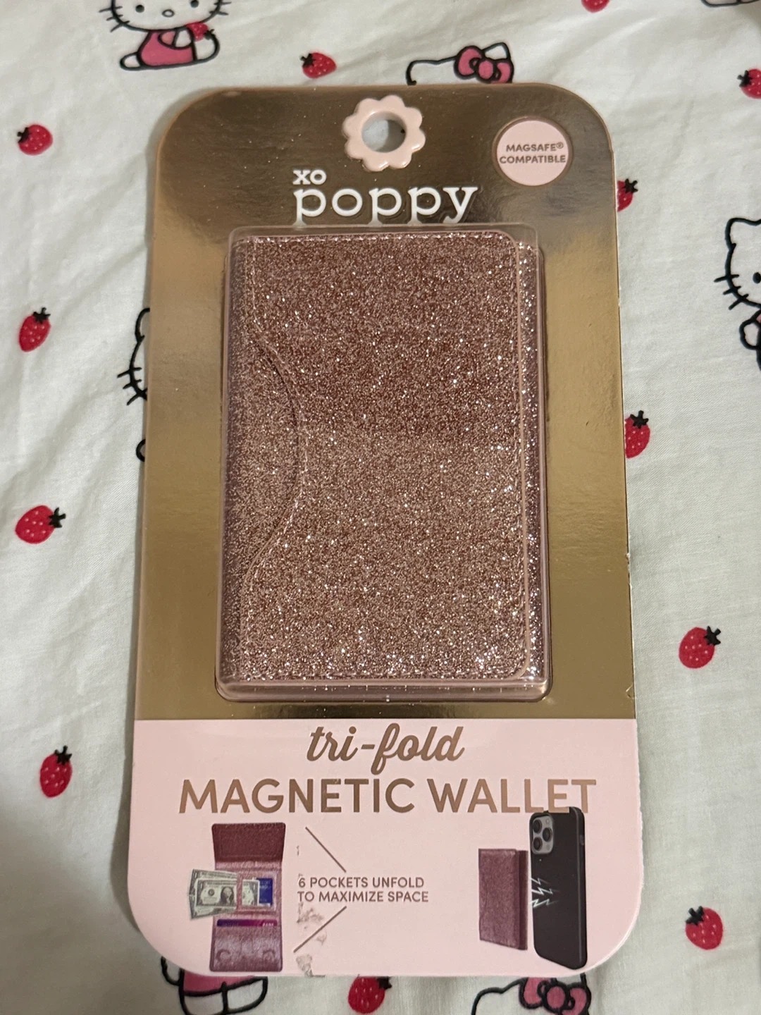 XO Poppy Pink Glitter Tri-Fold Magnetic Wallet
