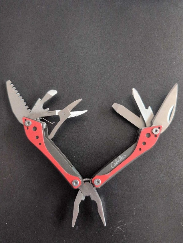 This Cabela's multi-tool is a compact and versatile tool, perfect for camping, hiking, or everyday tasks, and it comes with its own handy carrying case. This item is New and never used once. Here are some features: * Multiple screwdriver bits * Pliers * Knife blade * File * Saw Multi-tools like this typically sell for $20-$40 , so I've priced it competitively. If the ad is up, it's available! No need to ask, just let me know when you can pick it up. It's eager to find a new home and assist in all your DIY and outdoor escapades! Pick up only!