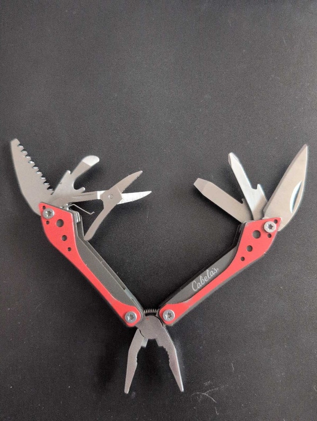 This Cabela's multi-tool is a compact and versatile tool, perfect for camping, hiking, or everyday tasks, and it comes with its own handy carrying case. This item is New and never used once. Here are some features: * Multiple screwdriver bits * Pliers * Knife blade * File * Saw Multi-tools like this typically sell for $20-$40 , so I've priced it competitively. If the ad is up, it's available! No need to ask, just let me know when you can pick it up. It's eager to find a new home and assist in all your DIY and outdoor escapades! Pick up only!
