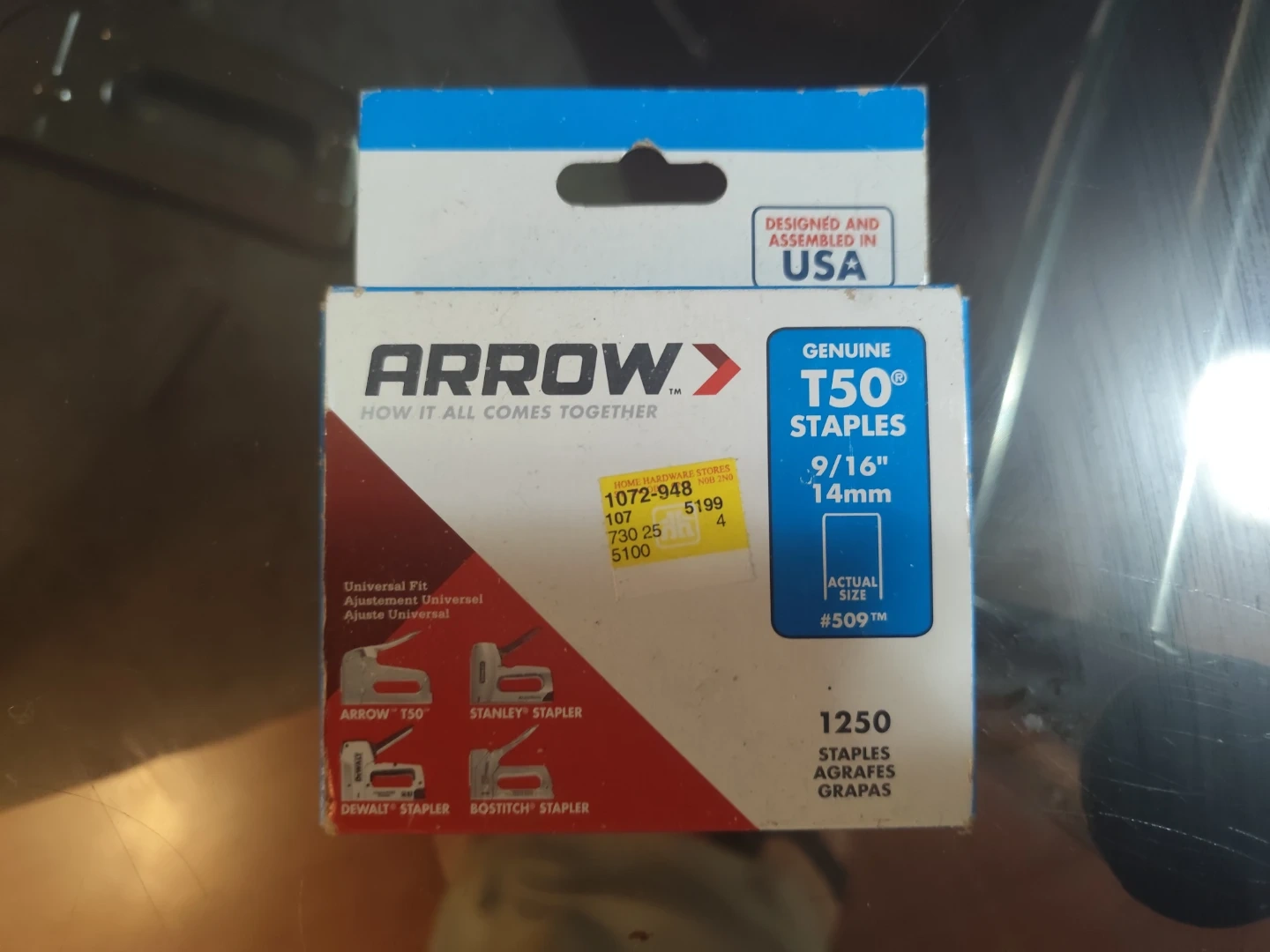 Selling an Arrow T50 staple gun! It comes with a box of genuine T50 staples, size 9/16" (14mm). The box also mentions it's compatible with Stanley, Dewalt, and Bostitch staplers. Perfect for your DIY projects!