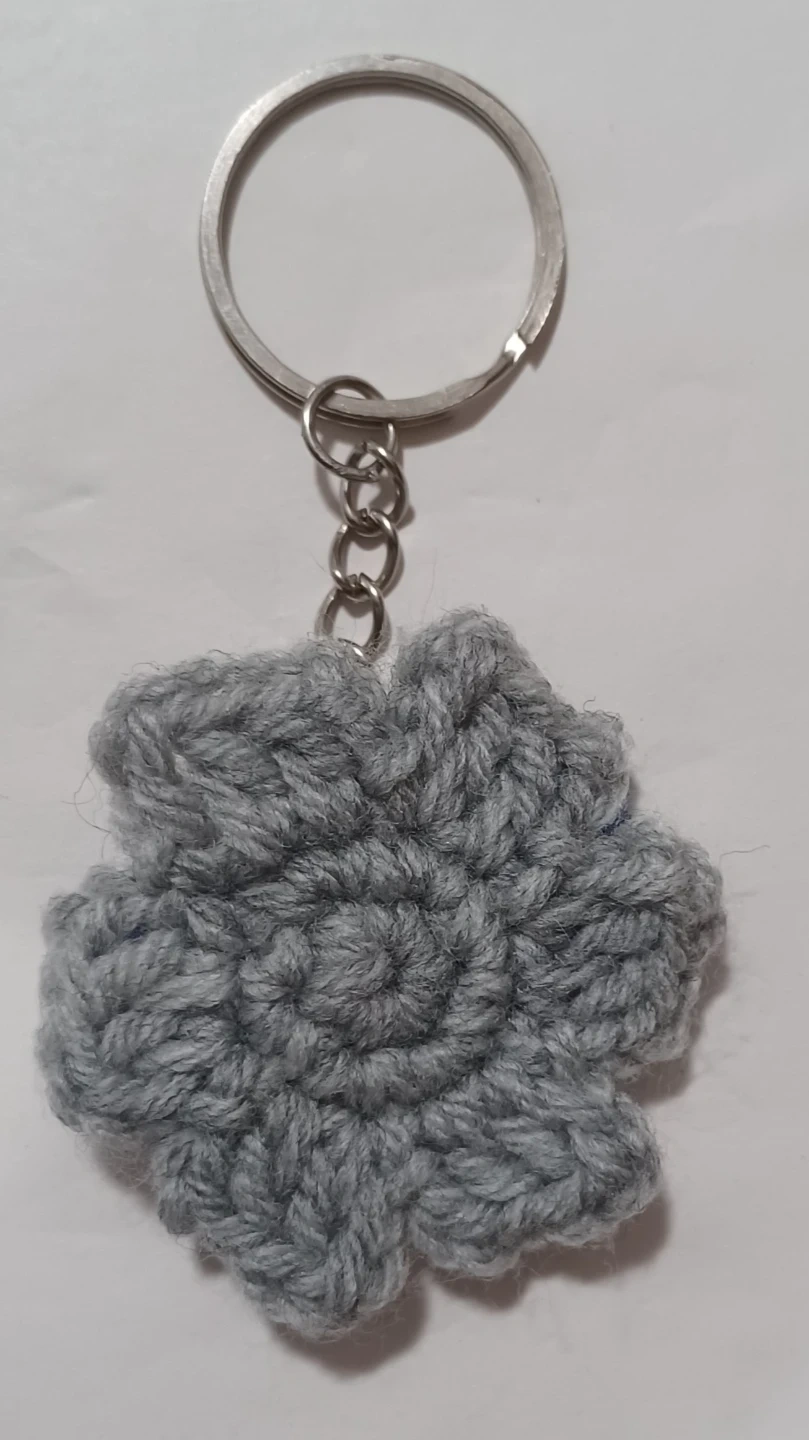 Handmade crocheted flower keychain. Available in grey and light blue. These would make a cute addition to your keys or bag!Both $5 Each $4