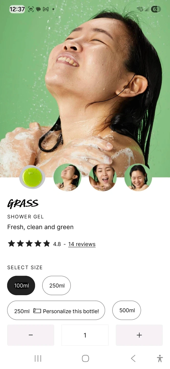 This Lush Grass Shower Gel comes in a 100ml bottle. It's made with wheatgrass juice and neroli oil for a fresh scent. This clean, green gel is perfect for starting your day!